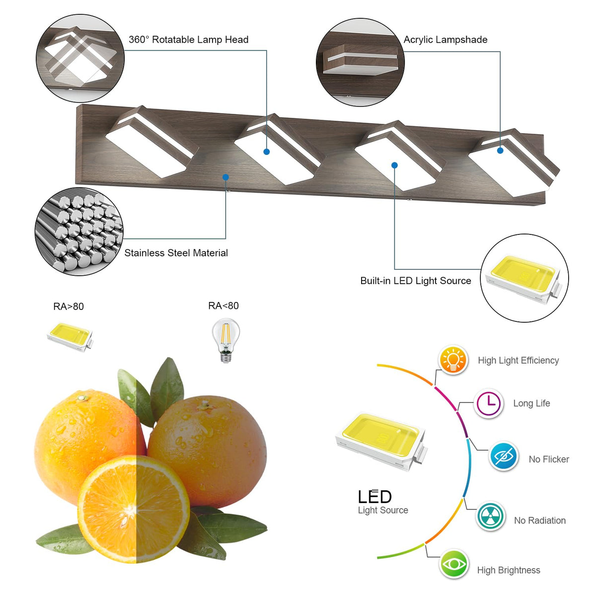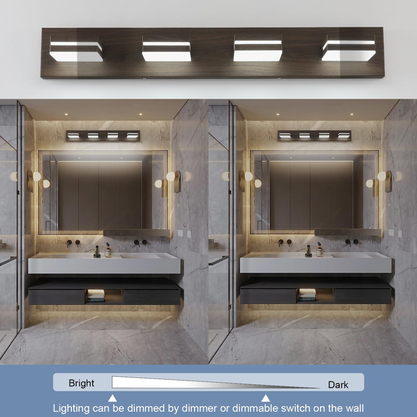 Sinerise Led Modern Bathroom Vanity Light Fixtures (4-Light, 30-Inch, Dimmable), Brown Wood Painted Modern Acrylic Bathroom Wall