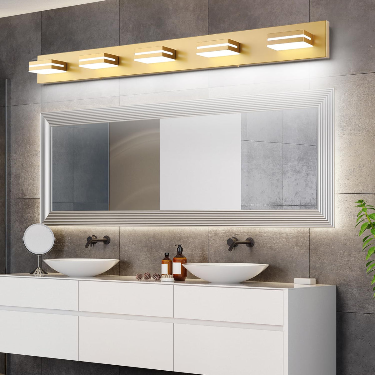 Sinerise Led Modern Bathroom Vanity Light Fixtures (6-Light, 48-Inch), Matte Gold Modern Acrylic Bathroom Wall Lighting Fixtures