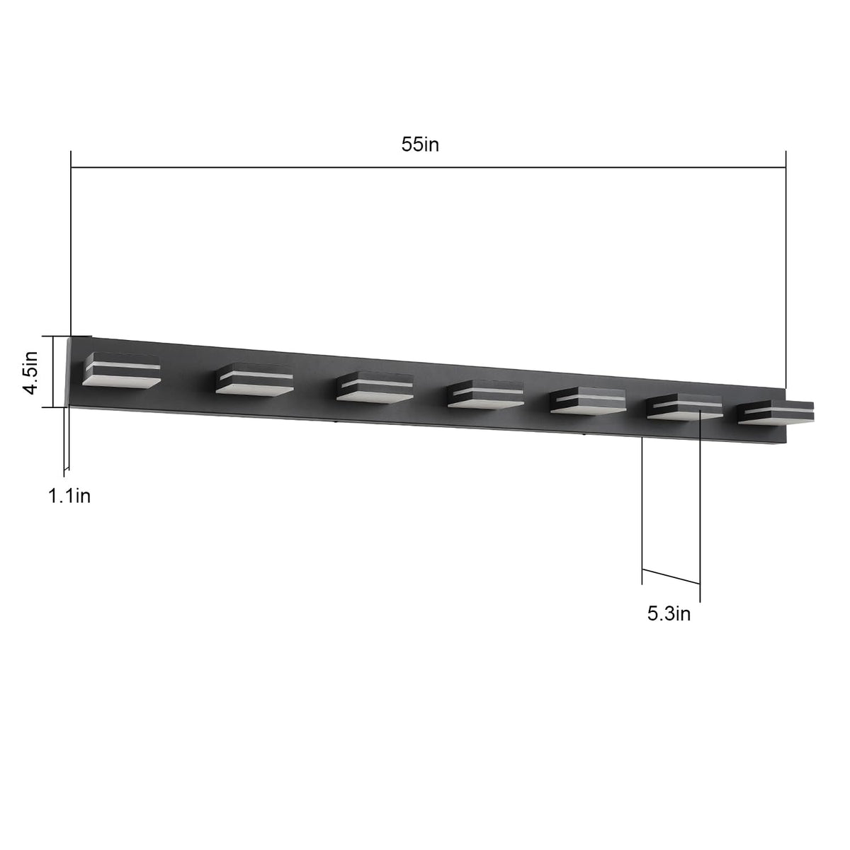 Sinerise Led Modern Bathroom Vanity Light Fixtures (7-Light, 55-Inch), Matte Black Modern Acrylic Bathroom Wall Lighting Fixture