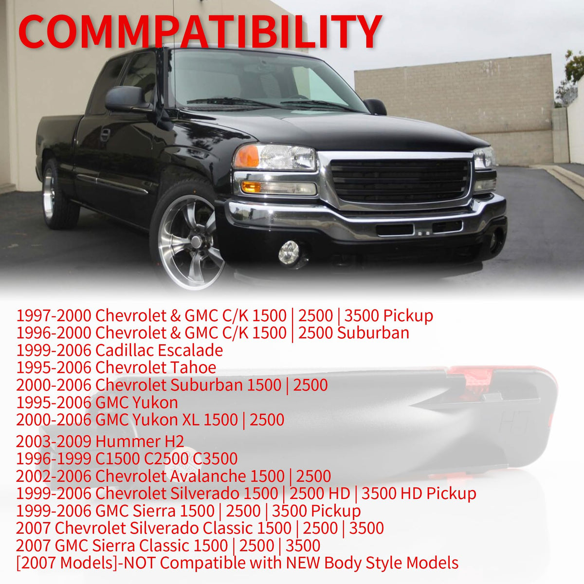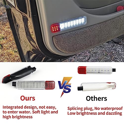 ?Fitment?:Compatible with 1999-2006 Chevy Silverado 1500 2500HD 3500HD Pickup, 2000-2006 Chevy Suburban 1500 2500, 1995-2006 Chevy Tahoe, 2002-2006 Chevy Avalanche 1500 2500, 1997-2000 Chevy C/K 1500 2500 3500 Series Pickup, 1996-2000 Chevy GMC C/K 1500 2500 Suburban, 1995-2006 GMC Yukon, 2000-2006 GMC Yukon XL 1500 2500, 1999-2006 GMC Sierra 1500 2500 3500 Pickup, 2007 Chevy Silverado/GMC Sierra Classic 1500 2500 3500, 1999-2006 Cadillac Escalade, 2003-2009 Hu-mmer H2 | ?Durable material?:This door light is made of strong components to ensure reliable performance and long service life, strong and not easy to break. | ?Easy Installation?:Plug and play, exact fit and direct replacement for your old , very easy to install, no need special tools when installing, direct replacement for a proper fit. | ?Brightness?:These red and white door lights are brighter than original door panel courtesy light, built-In high power SMD led chips to maximize illumination on the interior side doors, also works as a warning light at night avoid accidents. | ?Package Including?:A pair of right and left side LED Door Panel Light.