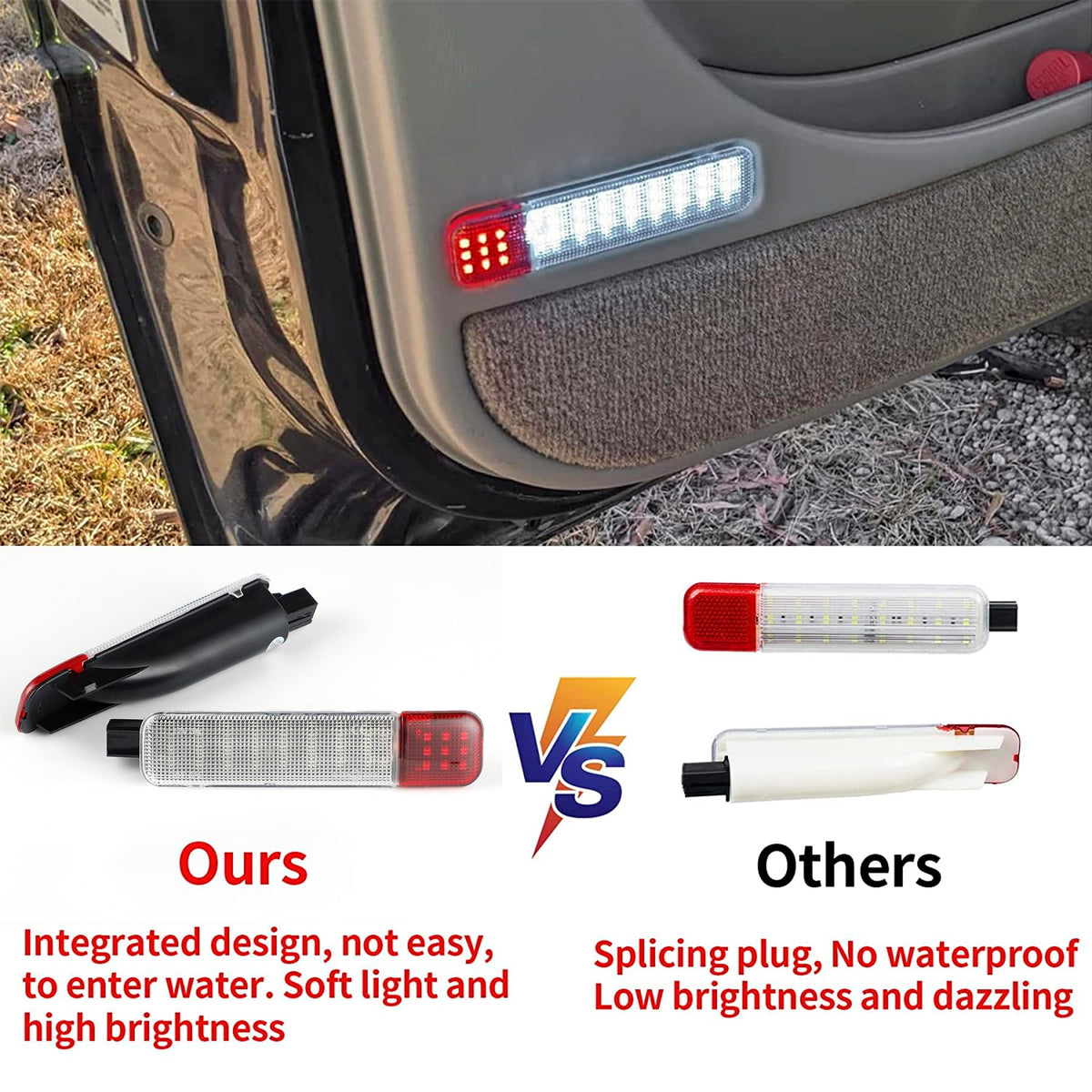 Q: What colors do the SINGARO LED Door Courtesy Panel Lights emit?A: The SINGARO LED Door Courtesy Panel Lights emit red and white light. This combination not only enhances the interior aesthetics of your vehicle but also serves as a warning light to improve safety during nighttime driving.