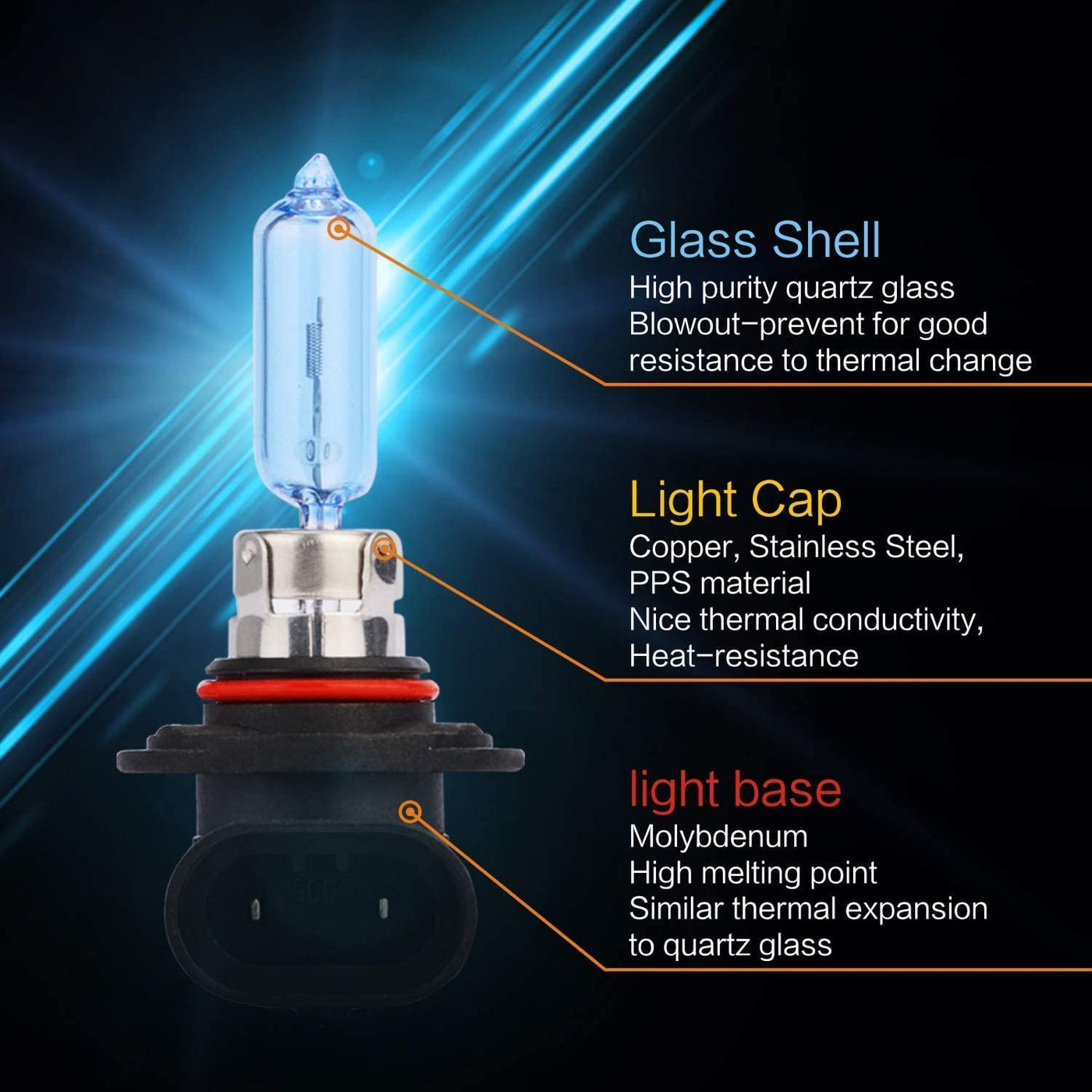 What you get: HASSLE FREE support; Better night driving vision,street legal, IP67 waterproof; 2 x 9005/HB3 Halogen Headlight 1 x User Manual; Features: Emits evenly distributed lights that are comfortable for driver s eyes; Play and Plug, easy to install simply remove stock bulbs and replace with new bulbs; No glare against on-coming traffic compare to OTHER headlights; No haziness during foggy weather compare to traditional bulbs Original equipment equivalent; Works With 99% Of Vehicles With No Errors; Type: 9005/HB3 Working Voltage: 12V Output power: 65W Light Color: White Color Temperature: 3800K Applications: For Headlight High/Low Beam, Fog Light of Car, Daytime Running Light (DRL) Longer Life: Up to 550 Hrs. Quantity: 2PCS Note: Please check with your light bulb type before purchasing. If you not sure what type should you buy, please do not hesitate to confirm with us via Account Center, we will reply you ASAP.