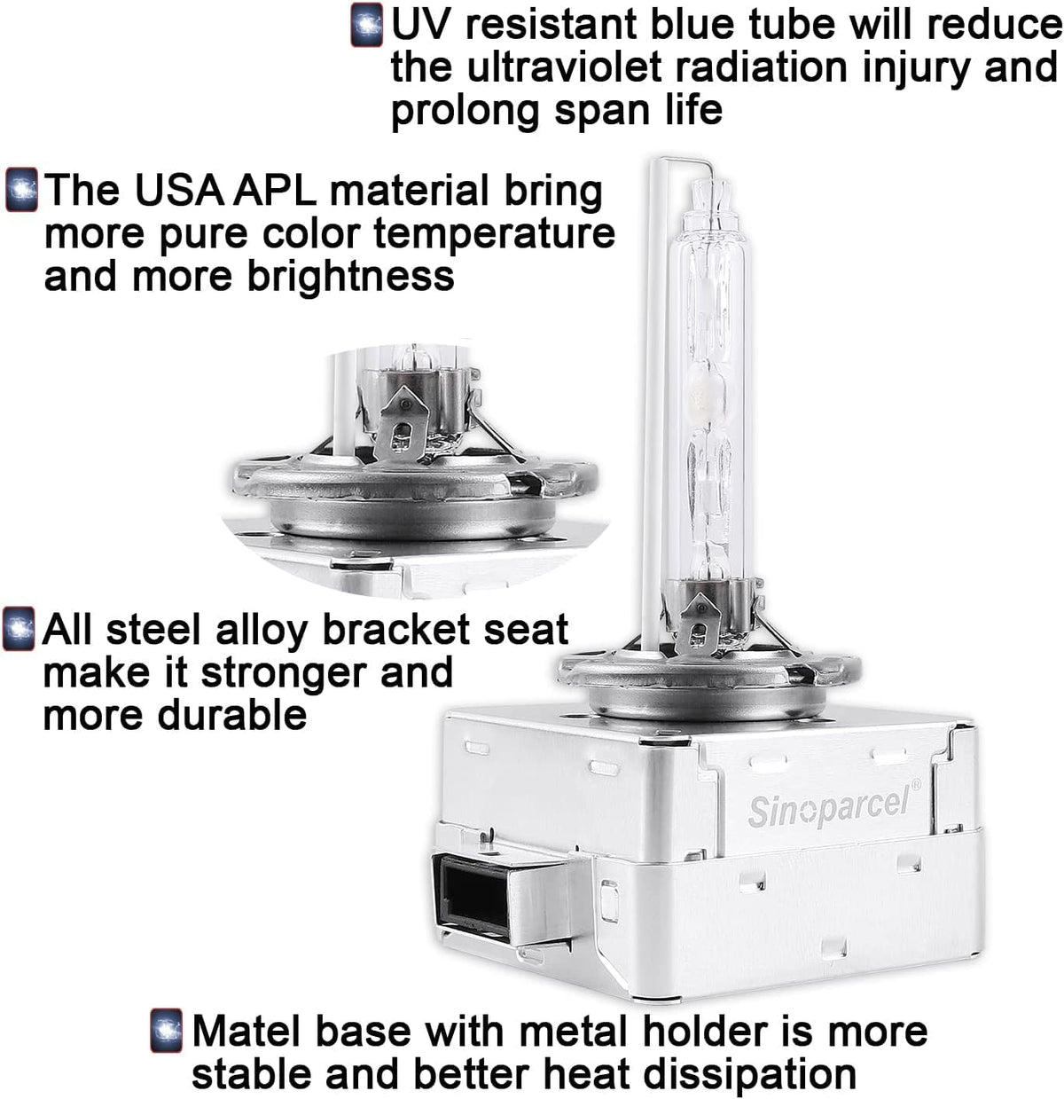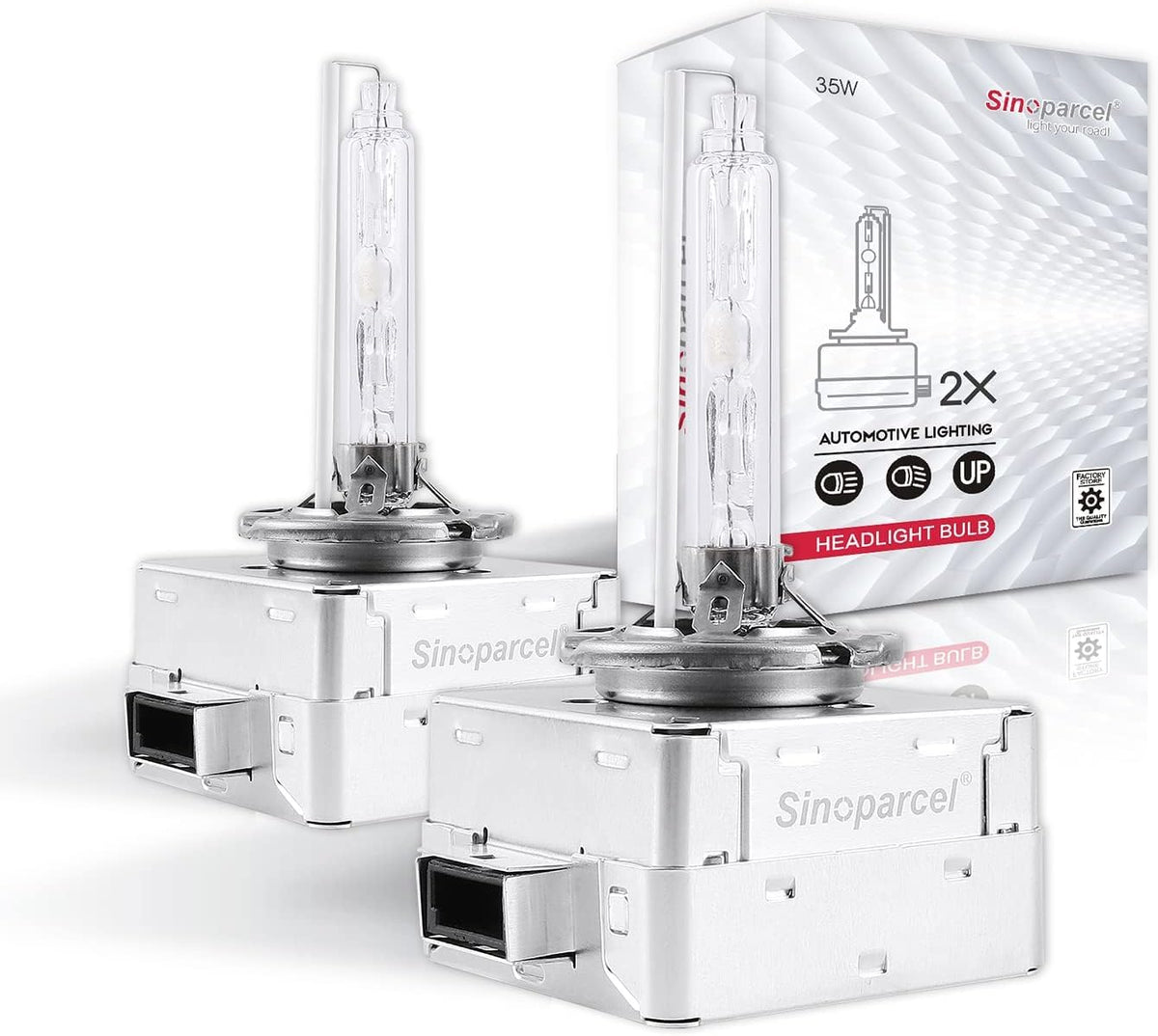 Sinoparcel D1S/D1R Xenon HID Headlight Bulbs - 6000K 35W High Low Beam 66144 66140 85140 85415 Replacement Lights,Pack of 2