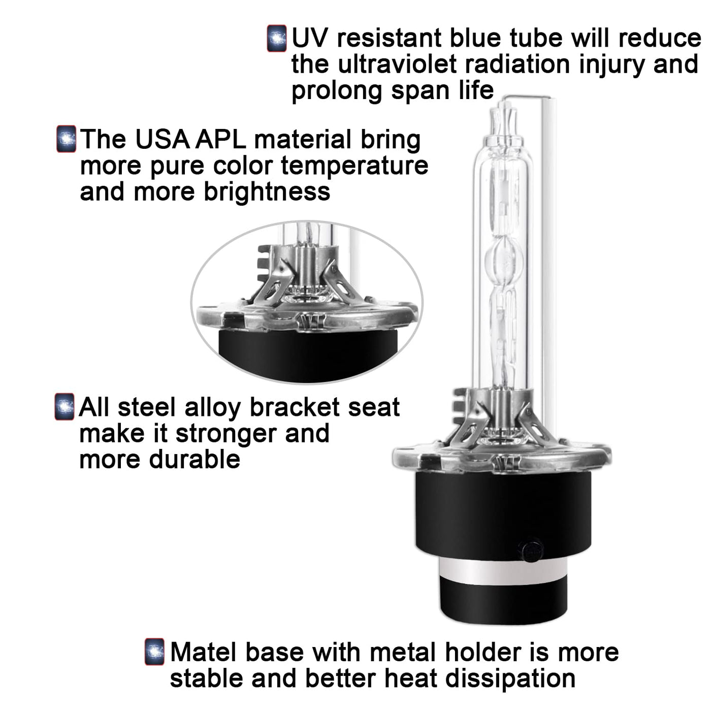 Q: How do these HID bulbs compare to standard halogen bulbs in terms of performance?A: The Sinoparcel D2S HID bulbs produce light output up to 3 times that of standard halogen bulbs, delivering up to 3200 lumens compared to halogen's 800 lumens. This results in brighter, clearer illumination and improved driving safety.