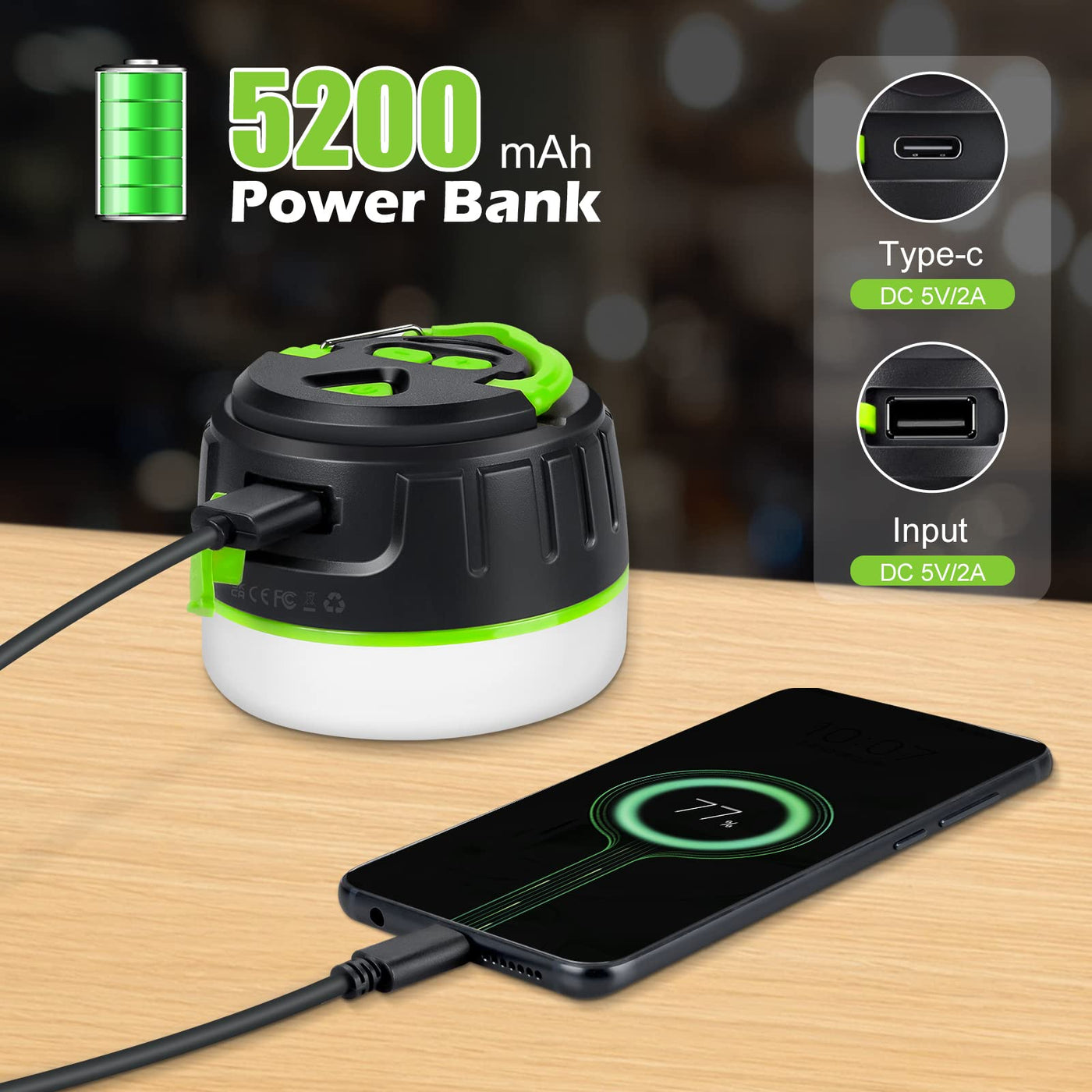 ✅ High-Capacity Power Bank: The built-in 5200mAh battery not only illuminates your space but also serves as an emergency power supply for charging devices.