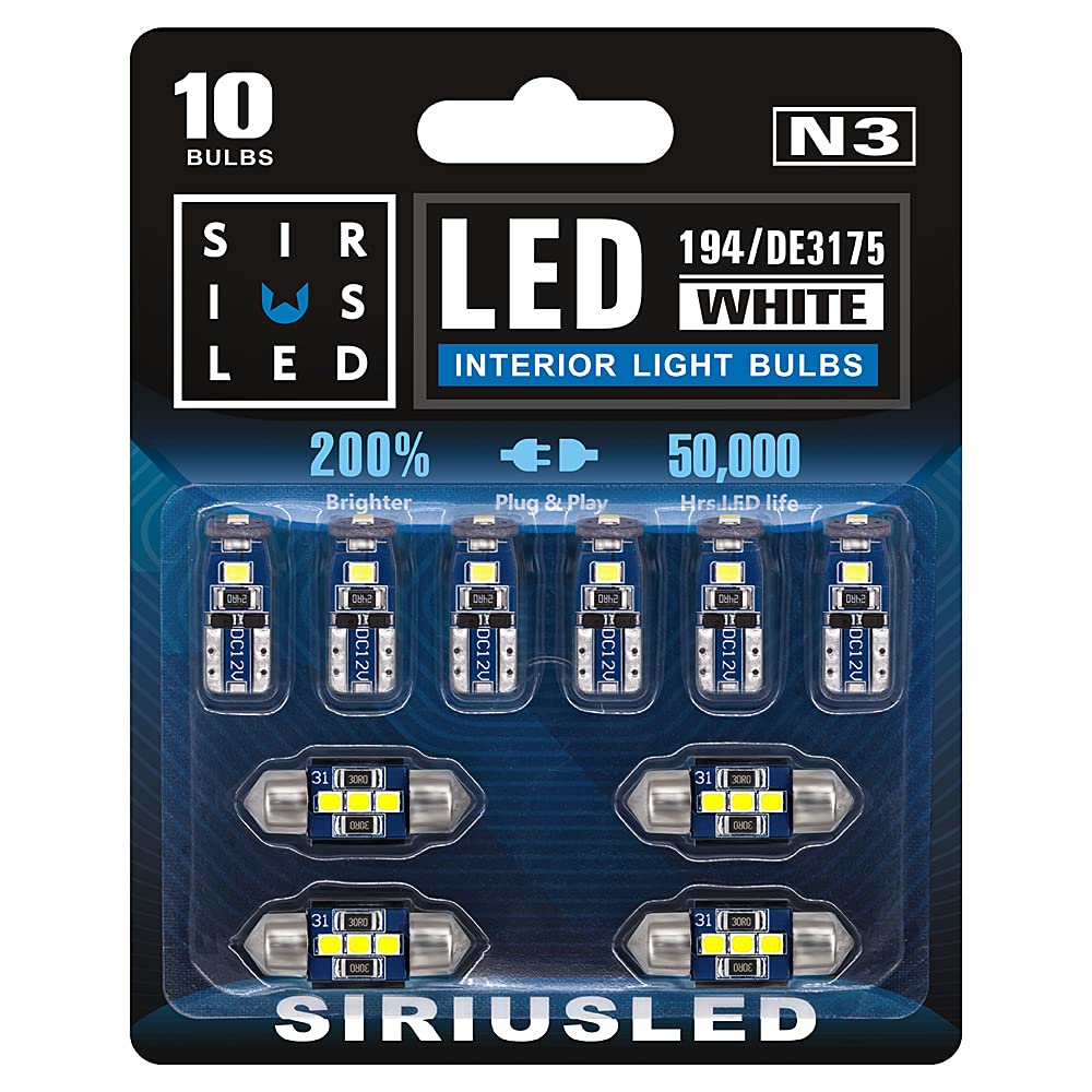 Sir Ius Led N3 De3175 31Mm 194 168 2825 Combo Led Bulbs White Super Bright 300 Lumens 3030 Chipset For Japanese Car Truck Interiors Dome Map Door Courtesy License Plate Lights Pack Of 10