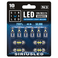 Value Pack of 10 Piece combo deal of 4x pieces DE3175 31mm festoon led bulbs and 6x pieces 194/168/2825 led bulbs for Most of the Japanese brand Car and Truck Interior and license Plate light application. | non polarity specific which mean you can plug the bulb in either way and it will work just fine, they are non-canbus LED, if your car require Canbus, they will give you pop up error message | Each bulb built with three 3030 high power SMD Chips. Give your car pure white super bright light output. | Direct replace the original halogen bulb. Plug and play for easy installation. Please make sure they are right bulb size for your specific car | We offer 1 year warranty if the bulb confirmed to be manufacture defect or shipping damaged