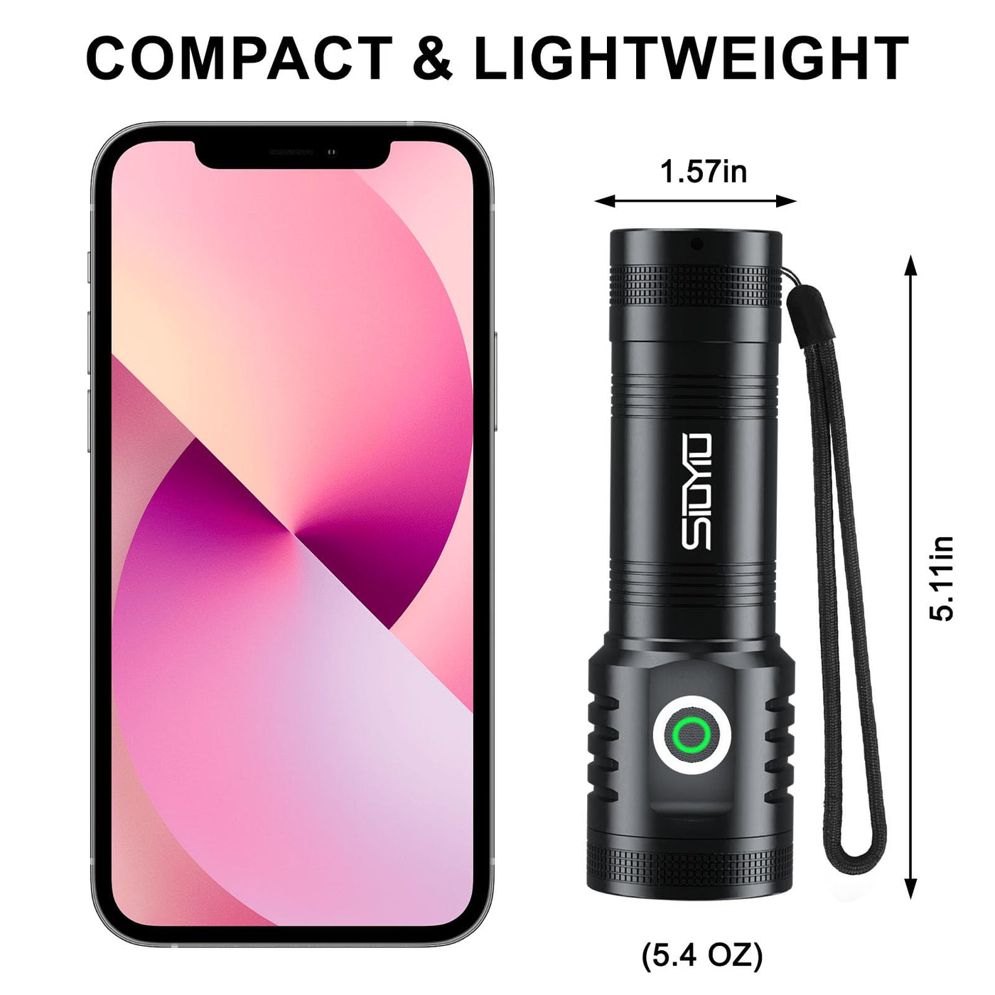Siuyiu 2600Lumens Tactical Flashlight USB-C Rechargeable, Super Bright Flashlight, LED Flashlights High Lumens, with 5 Modes & I