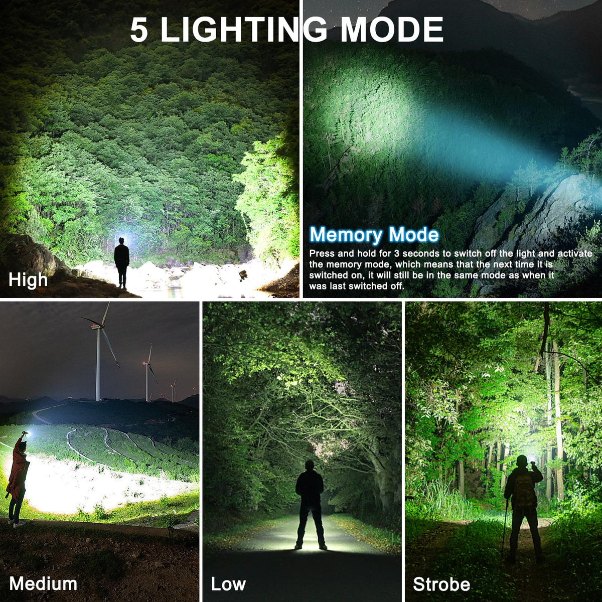Siuyiu Flashlights High Lumens, USB Rechargeable Flashlight with LCD Digital Power Display, Zoomable LED Super Bright Flash Ligh