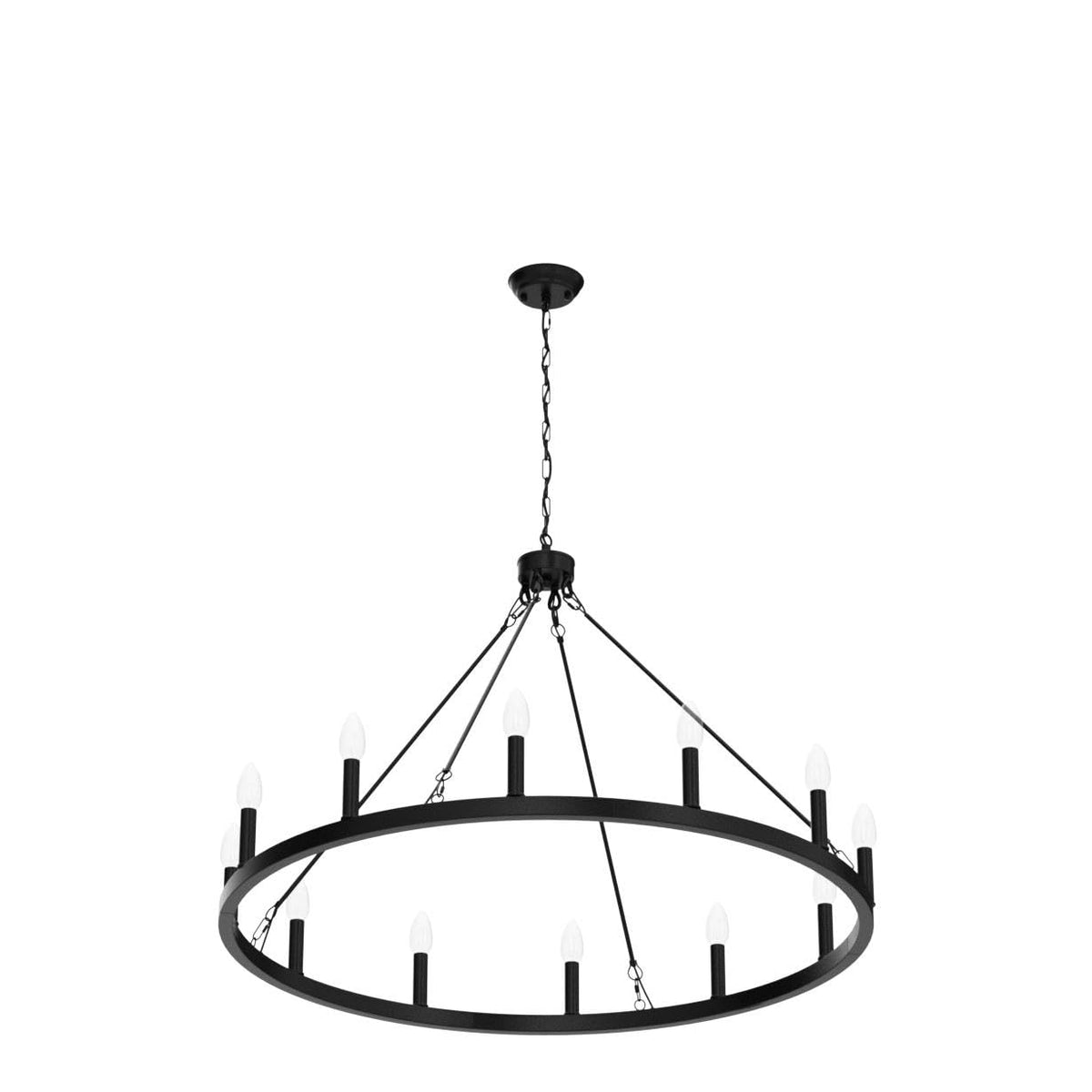 This wagon wheel chandeliers is made of high quality metal,4 matte black finish linked bars support a black large round metal frame with 12 exposed lights perched on top to offer plenty of light.