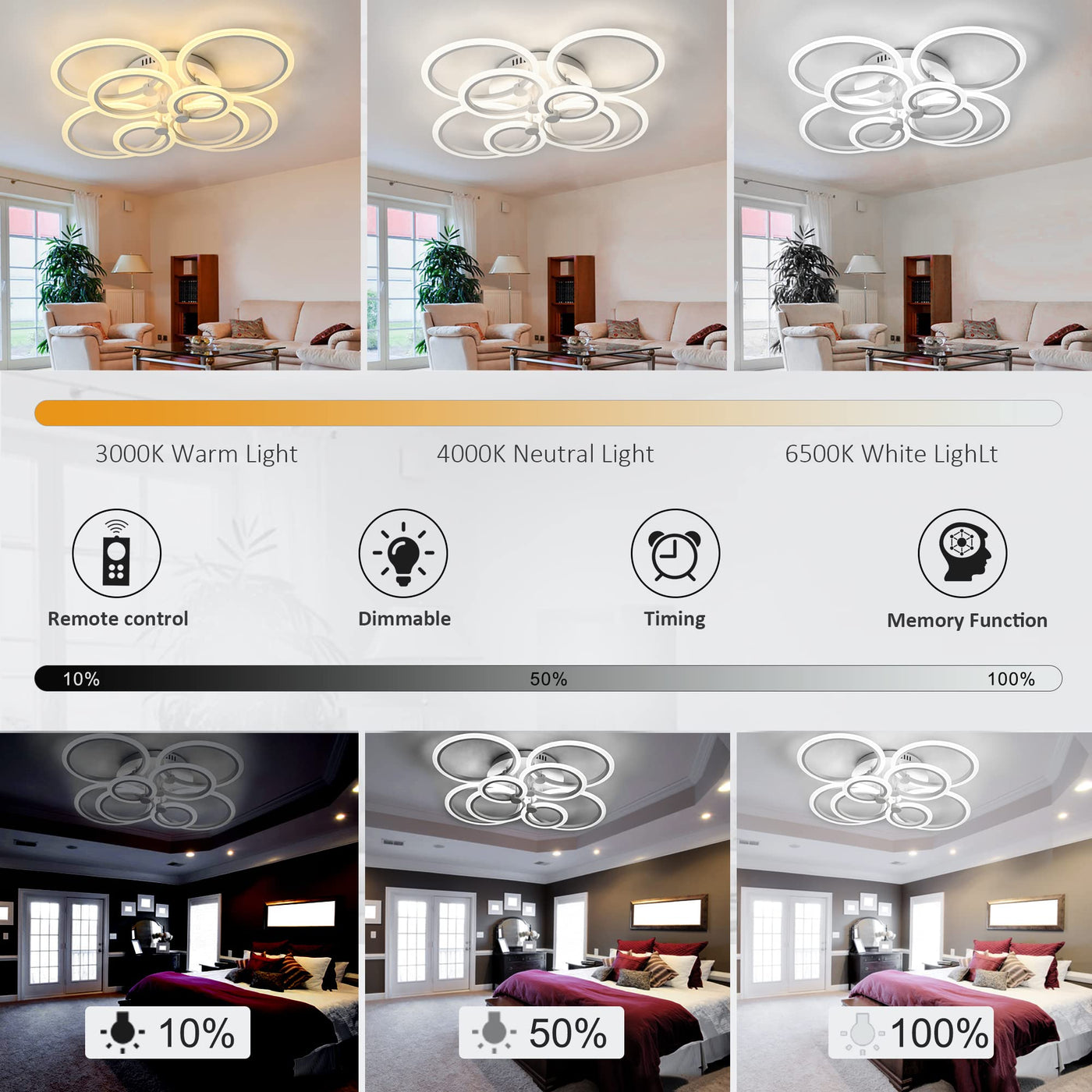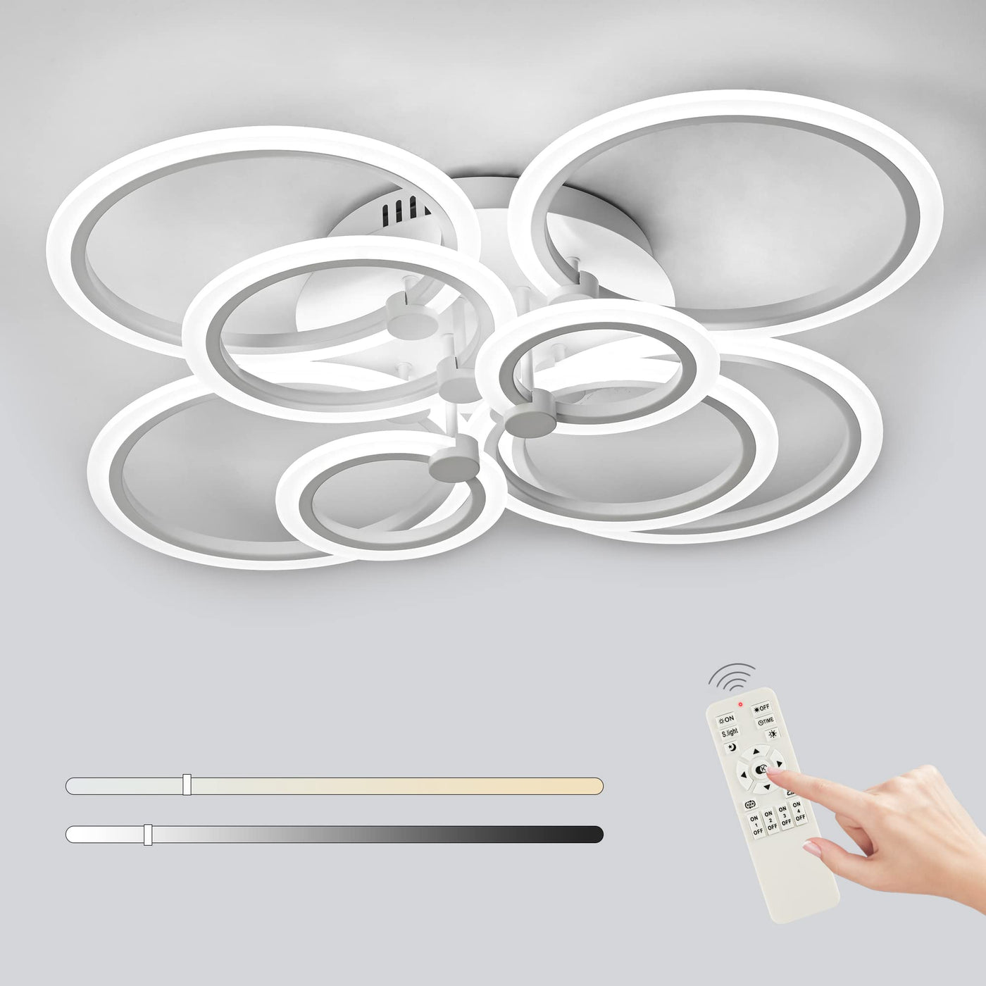 - Q: Is the SJV 8Rings LED Ceiling Light suitable for dimming? A: Yes, it is dimmable with a remote control, allowing you to adjust brightness from ten to one hundred percent.