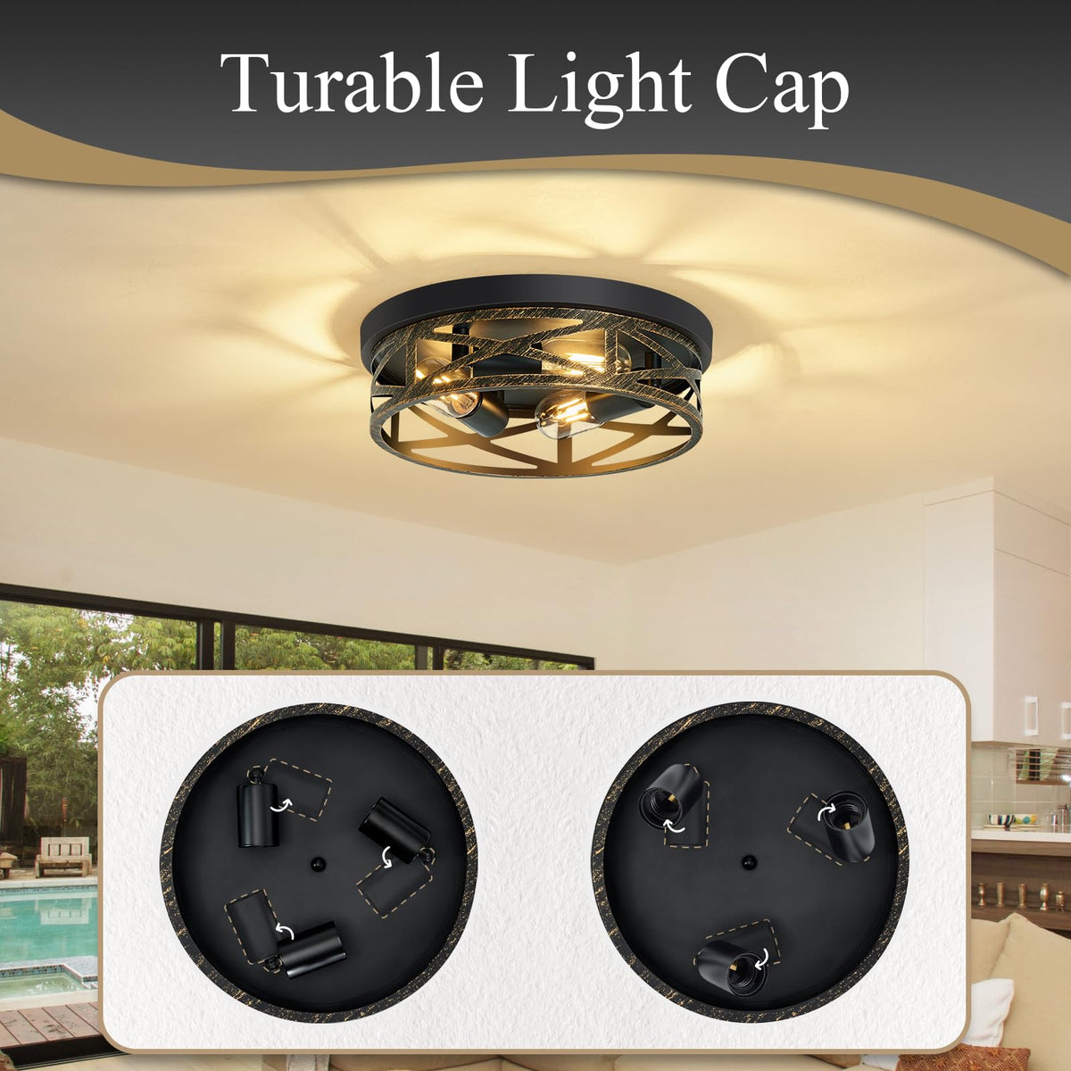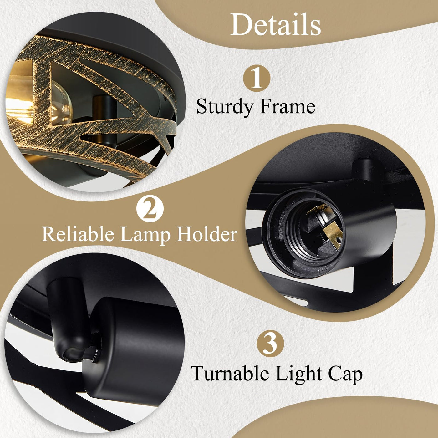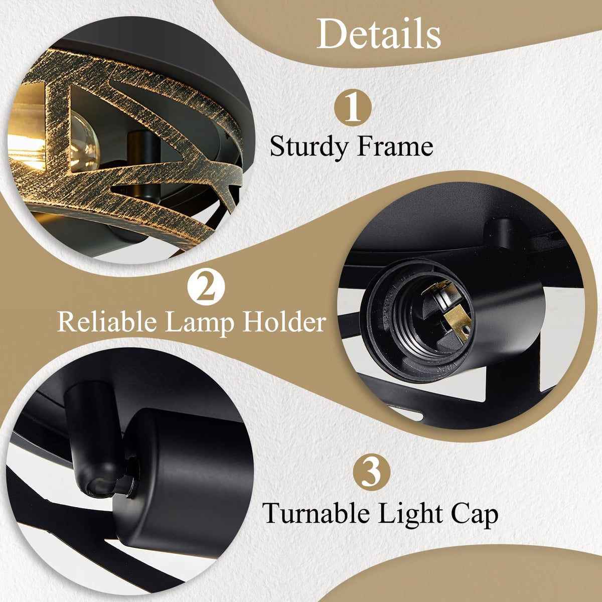 Skejao Flush Mount Ceiling Light Fixture,13 Inch Rustic Metal Black 3-Light Hallway Light Fixtures Ceiling,Vintage Light Fixture