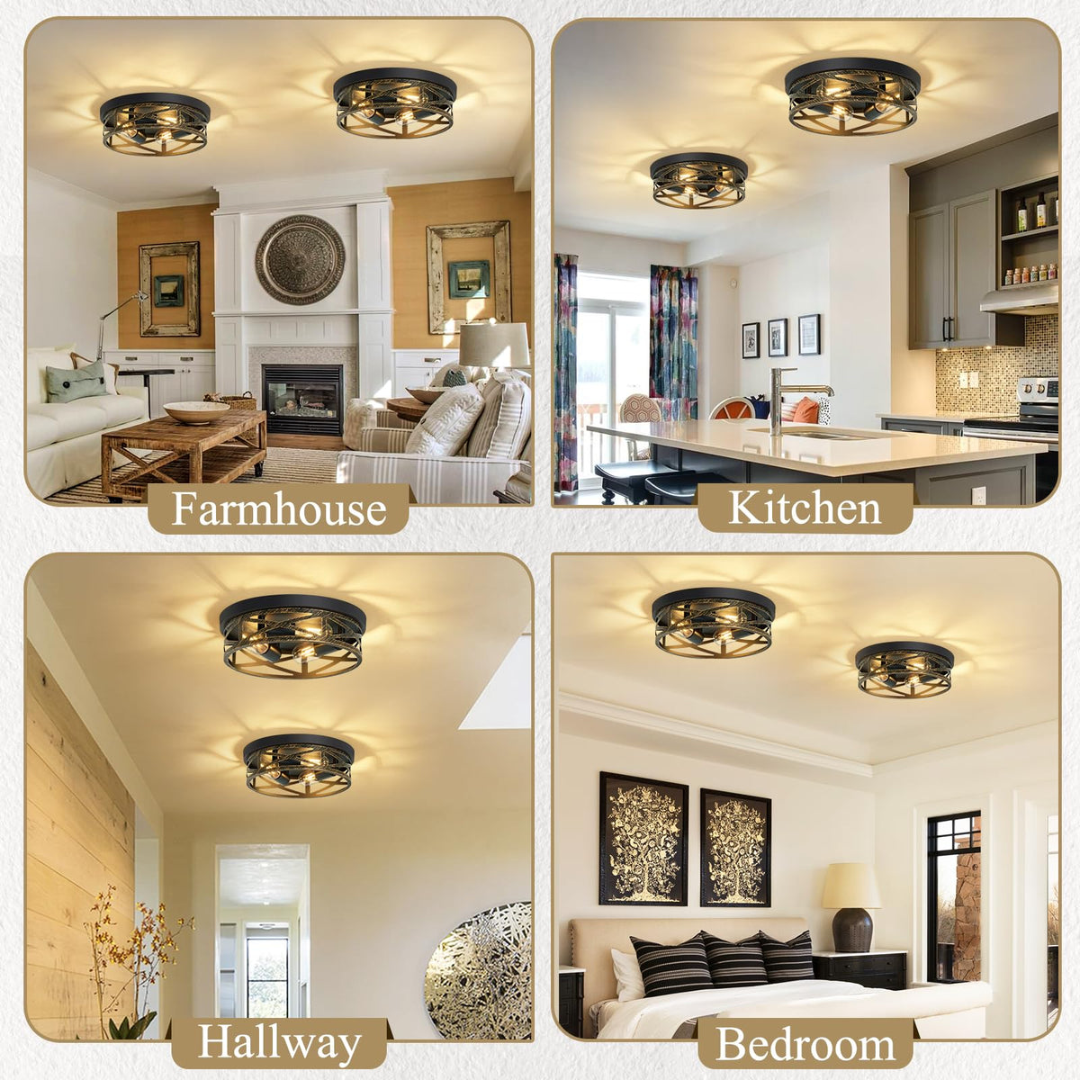 Skejao Flush Mount Ceiling Light Fixture,13 Inch Rustic Metal Black 3-Light Hallway Light Fixtures Ceiling,Vintage Light Fixtures Ceiling Mount For Farmhouse,Kitchen,Hall (2 Pack)