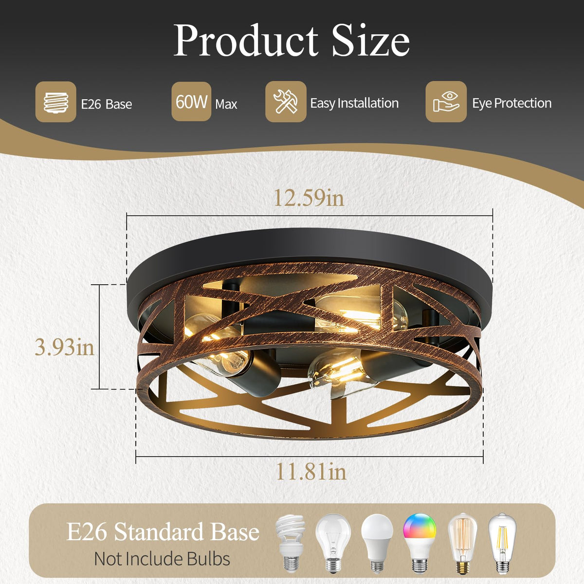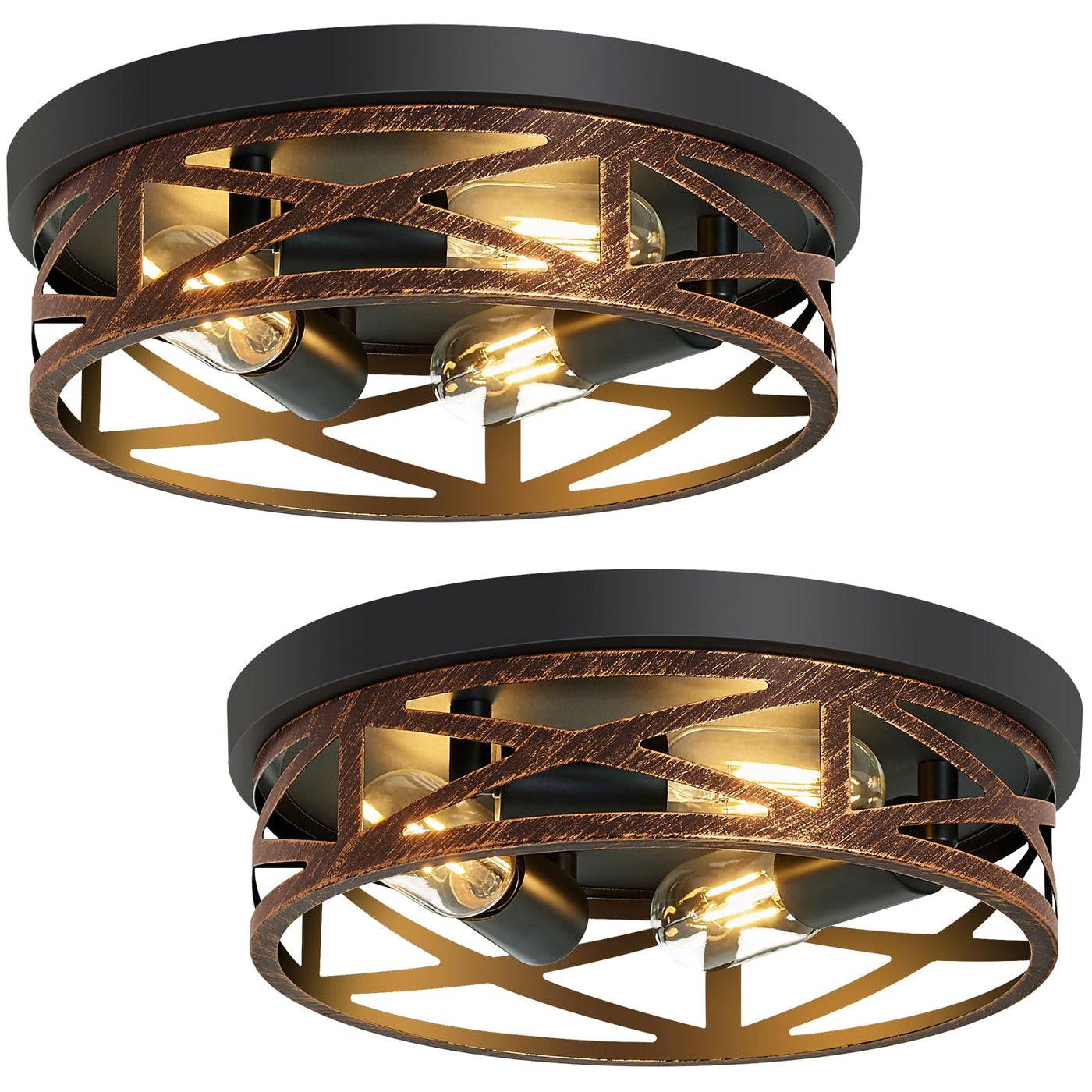 SKEJAO Flush Mount Ceiling Light Fixture, Vintage Metal Black, 13 inch, Model SK004G, 2 Pack