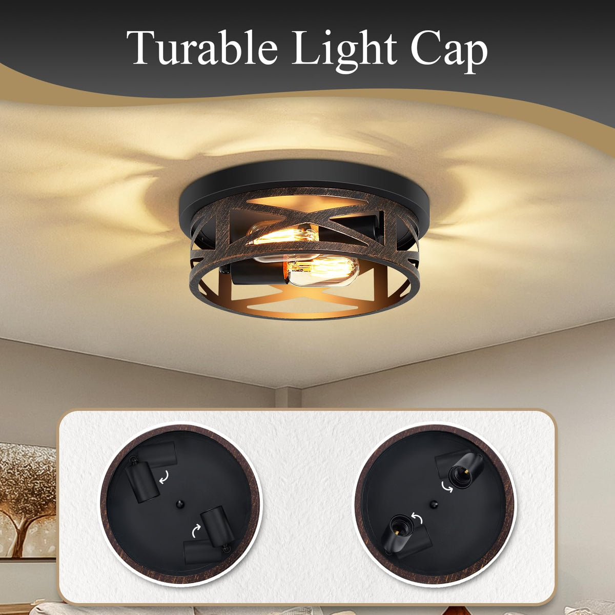 Skejao Flush Mount Ceiling Light Fixture,Vintage Metal Black 2-Light Hallway Light Fixtures Ceiling,Rustic Retro Light Fixtures