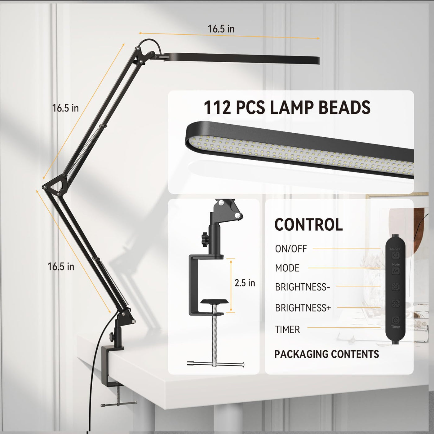 Q: How does the adjustable swing arm feature benefit my workspace?A: The adjustable swing arm and rotatable lamp head of the SKYLEO lamp enable you to easily position the light at the most comfortable angle, minimizing glare and enhancing your focus while working.