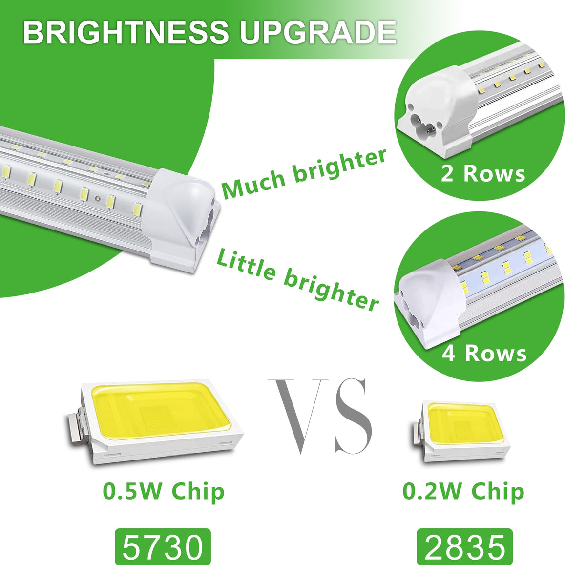 Skymoatled 8Ft Led Shop Light Fixture 100W 15000Lm 6000K, Clear Cover,Hanging/Surface Mount,Linkable Led Shop Lights,270Beam Angle V Shape Integrated T8 Led Lighting, Widely Used Garage, Workshop, Basement, Warehouse, Supermarket, And Office General Lighting. It Could Be Plugged & Play Or Hardware To A Wall Switch. Moreover, It Could Link Up To 4 Lights In A Series, Saving You Installation Costs And Time.