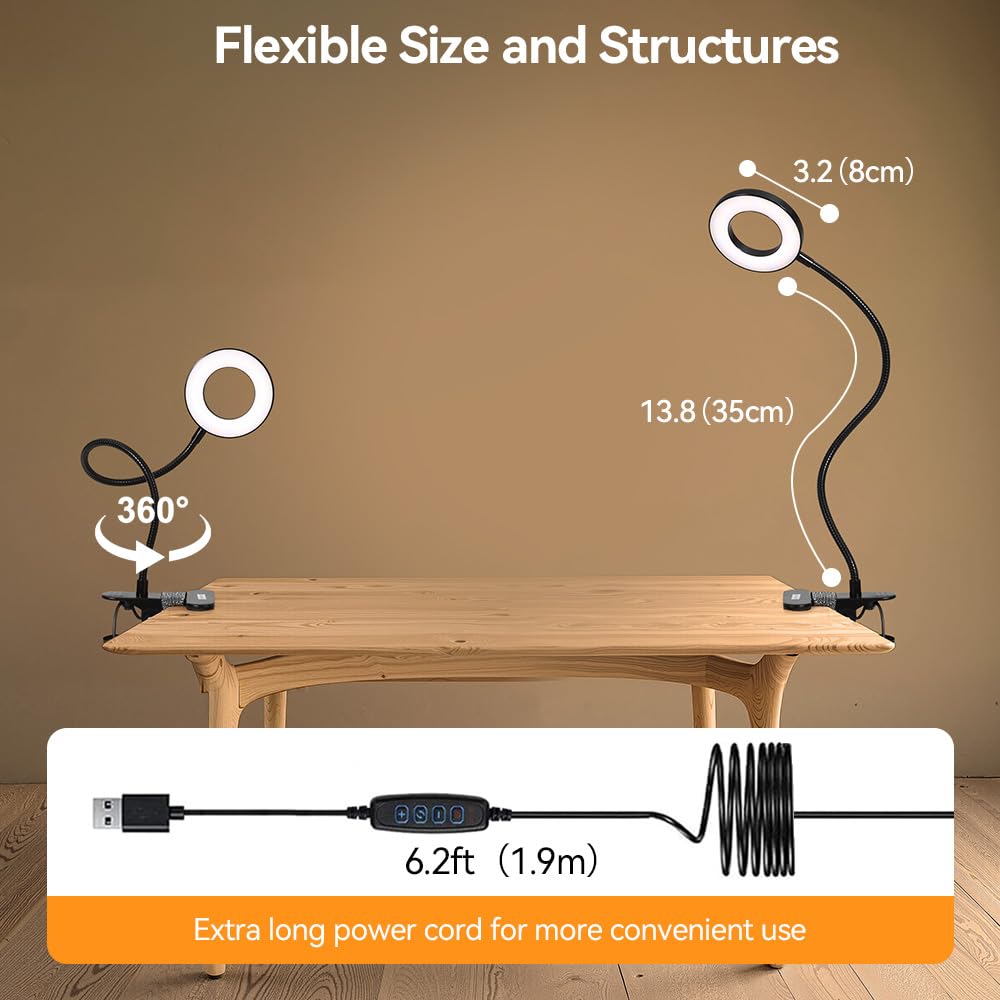 Skymore Clip On Light, Reading Light Book Light With Clamp, 3 Color Modes&10 Brightness Desk Light Clip On For Table, Bed Headbo