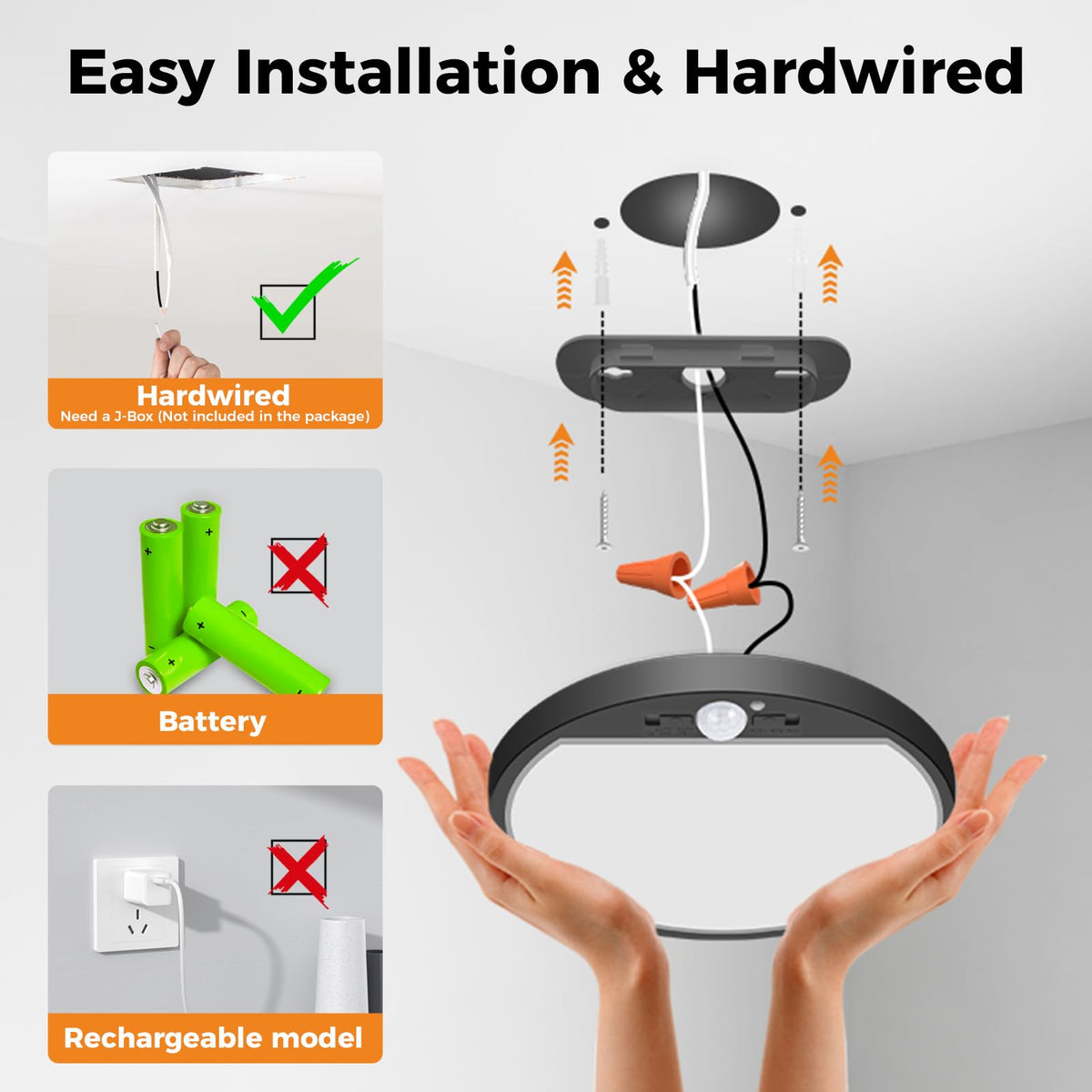 Q: Is the installation of the flush mount ceiling light easy?A: Absolutely! The slochi Motion Sensor Light can be easily installed on the ceiling or wall without the need for an electrician. Its insulated housing and simple design make it a DIY-friendly option.