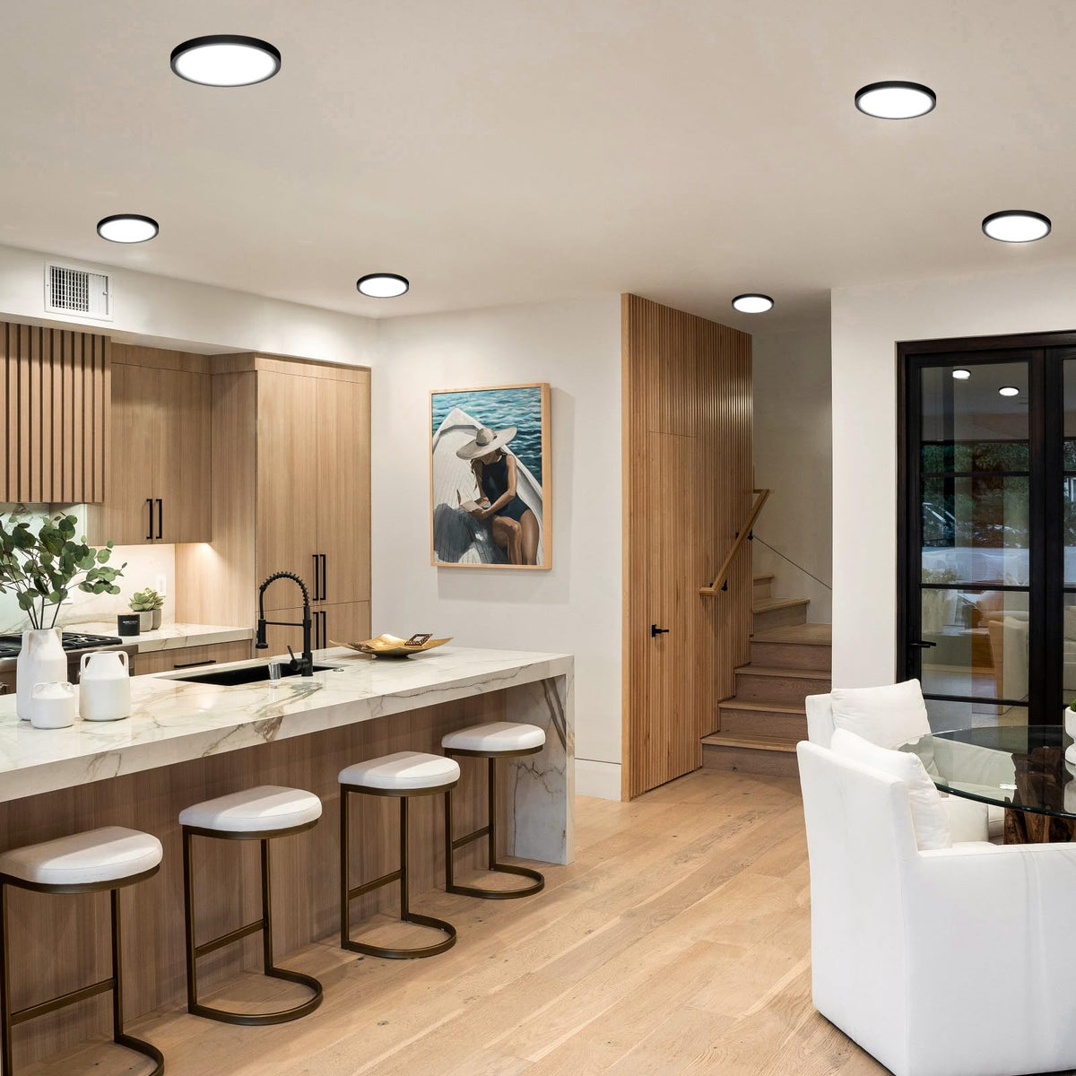 Slochi LED Flush Mount Ceiling Light Fixture, 12W 1200Lm, 6.5 Inch, Black, Modern Design for Kitchen, Bathroom, Bedroom, Hallway