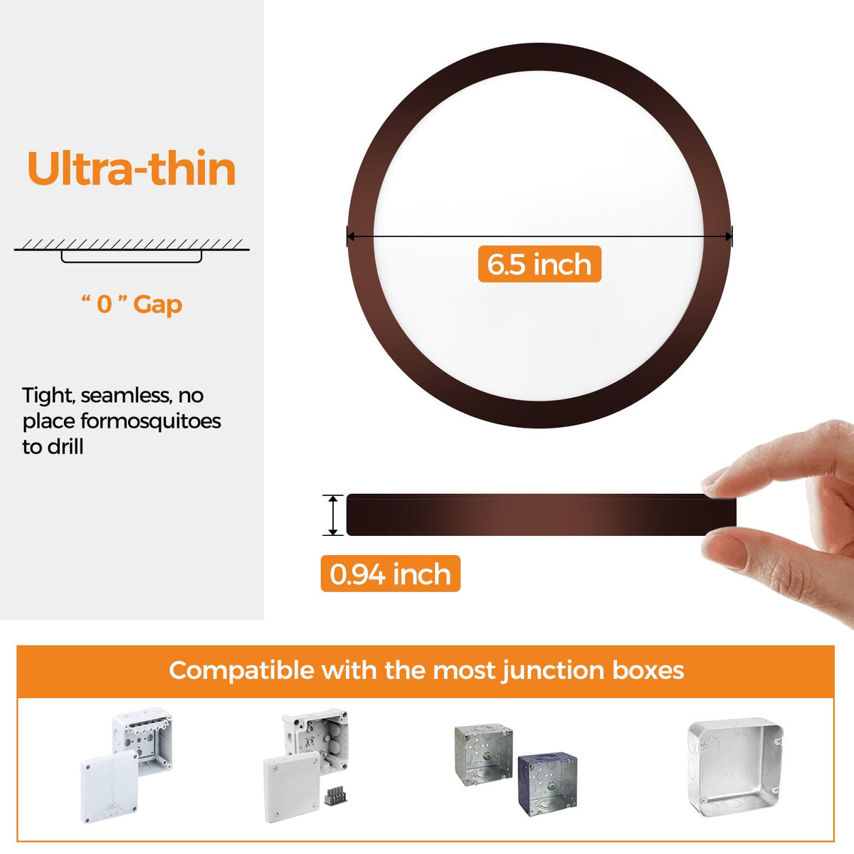 slochi LED Flush Mount Ceiling Light Fixture, 12W 1200Lm, 6.5 Inch, Oil-Rubbed Bronze, 3000K-4000K-6500
