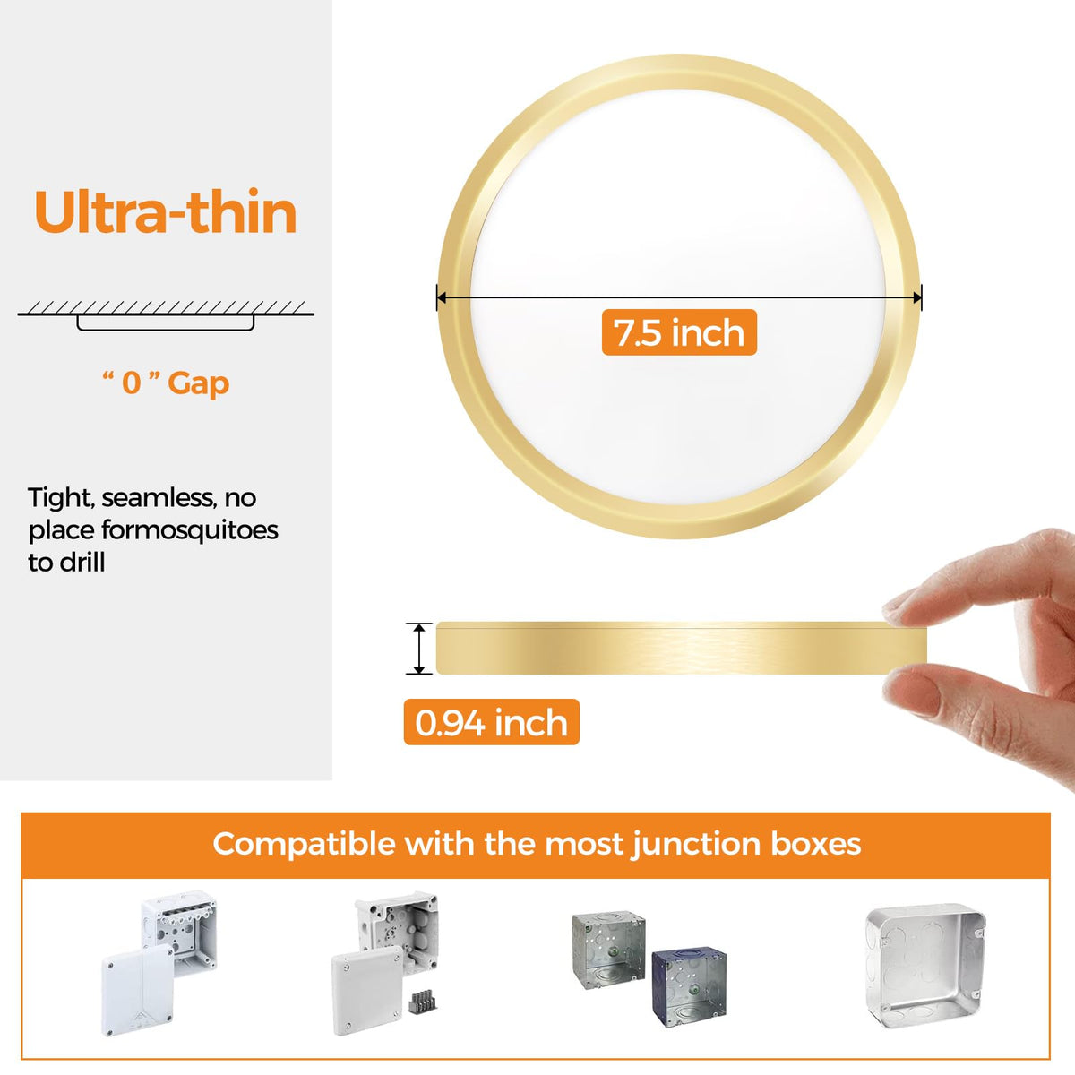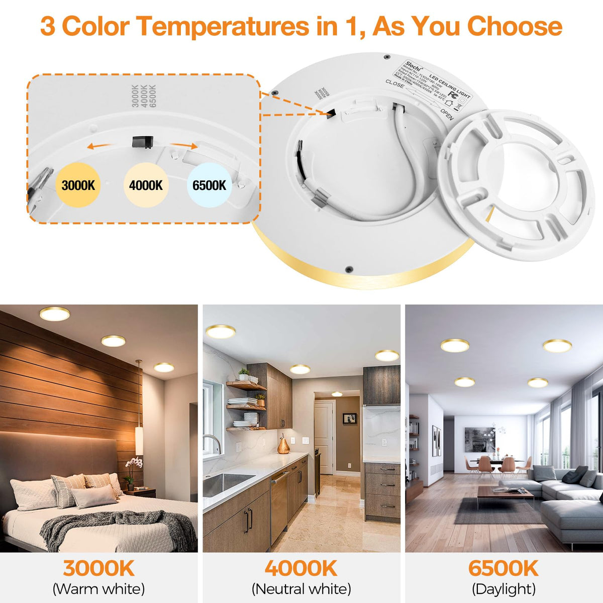 slochi LED Flush Mount Ceiling Light Fixture, 15W 1500Lm, 7.5 Inch, Gold