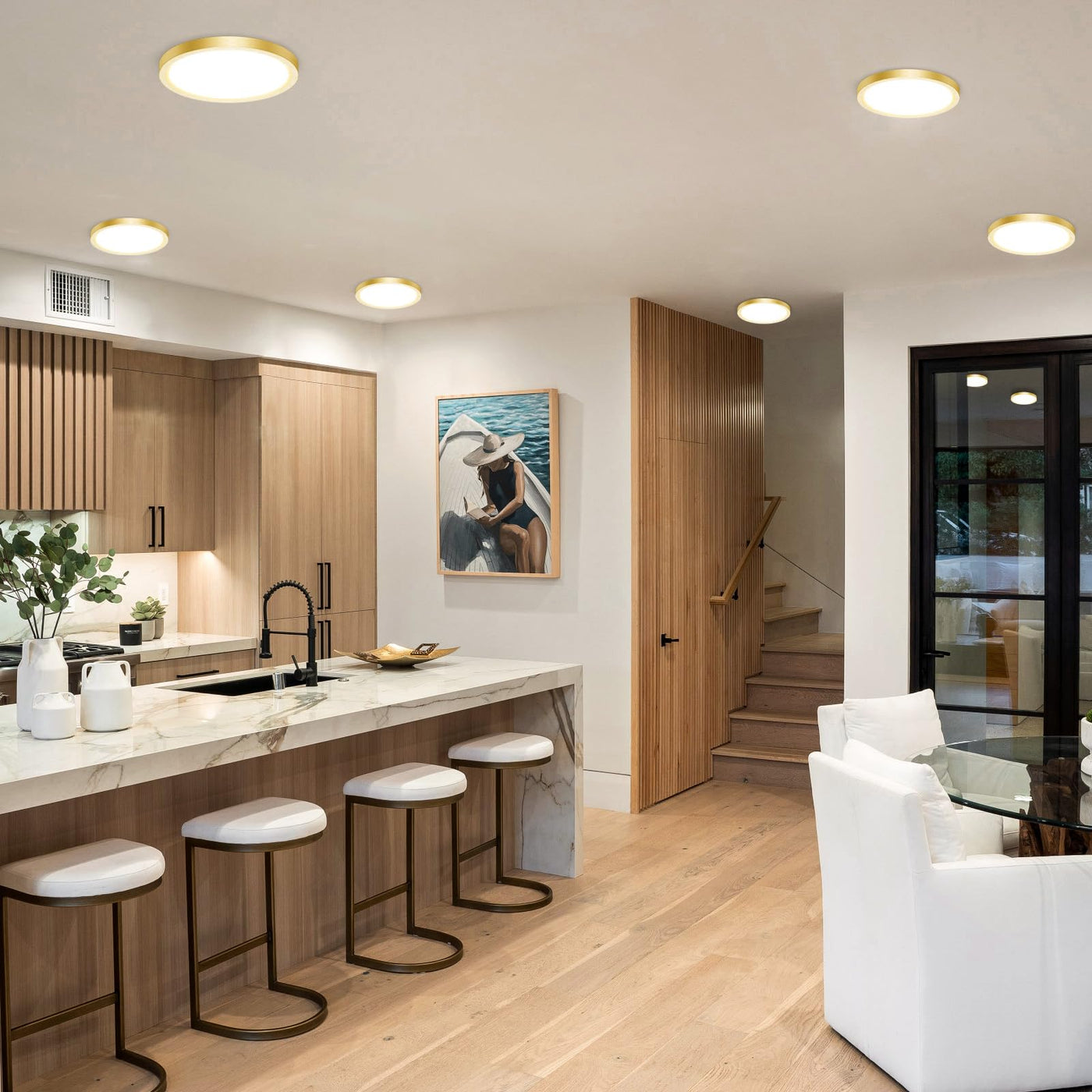 Q: In which areas of my home can I use the Slochi LED Flush Mount Ceiling Light?A: This versatile ceiling light is ideal for various indoor spaces such as kitchens, bedrooms, laundry rooms, and hallways, enhancing the ambiance with its modern design.