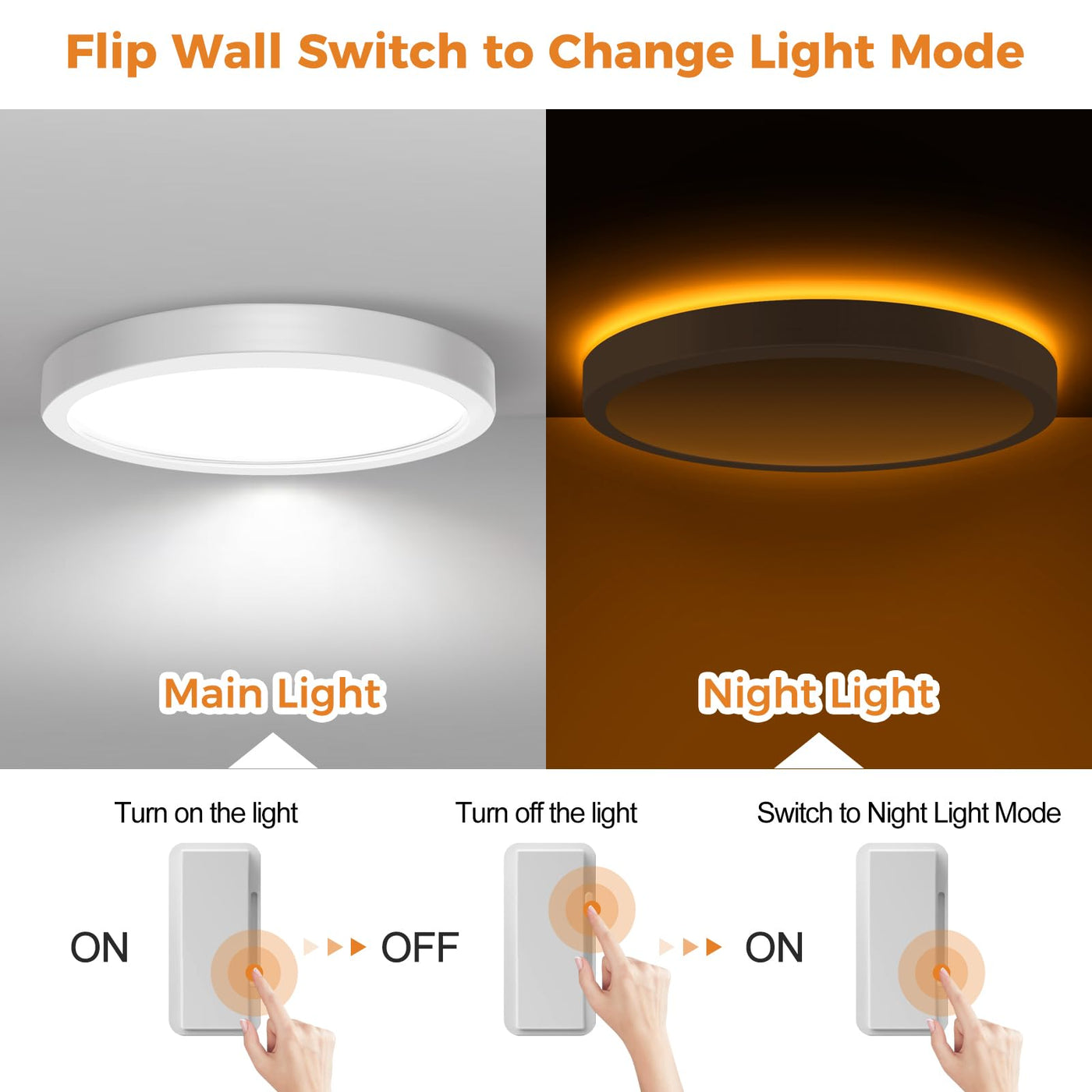 slochi LED Flush Mount Ceiling Light Fixture, 24W 3200Lm, 12 Inch, White, 3000K-4000K-6500K, Modern Design,