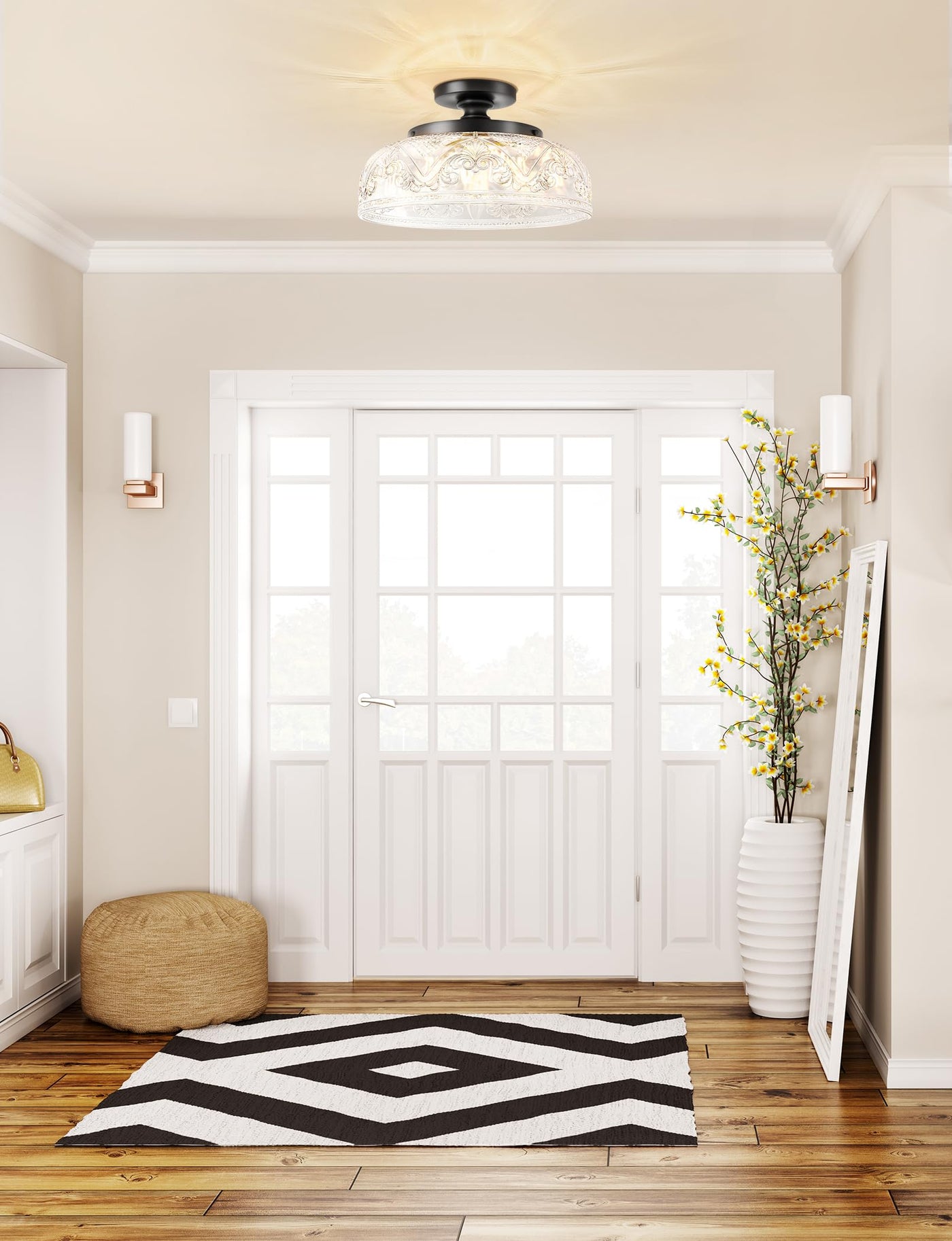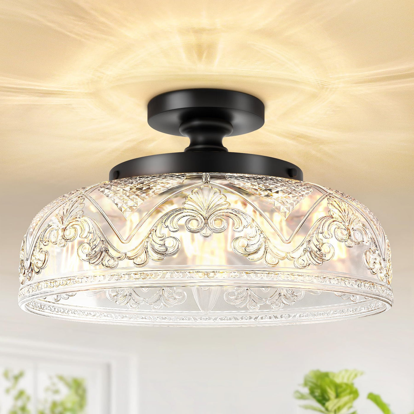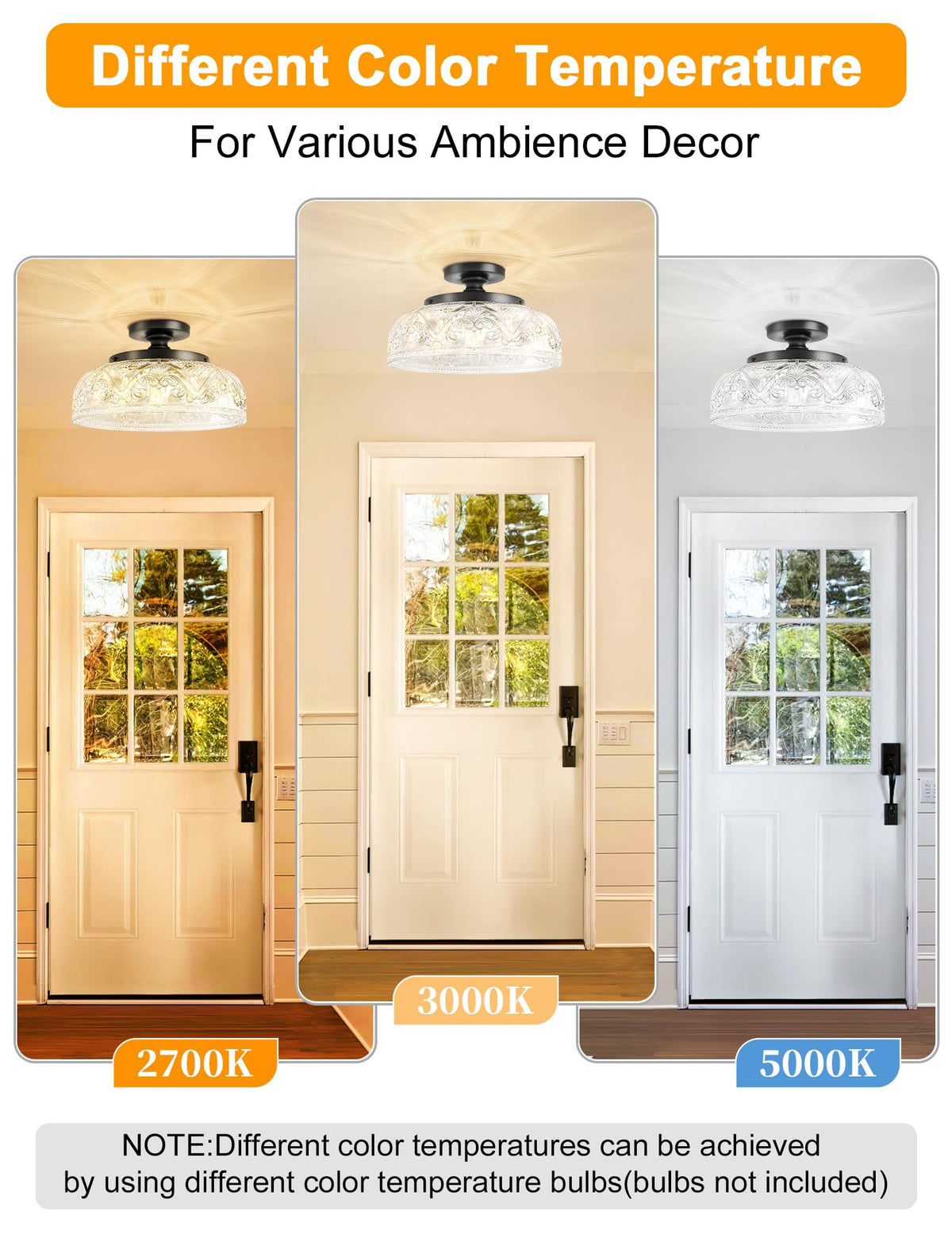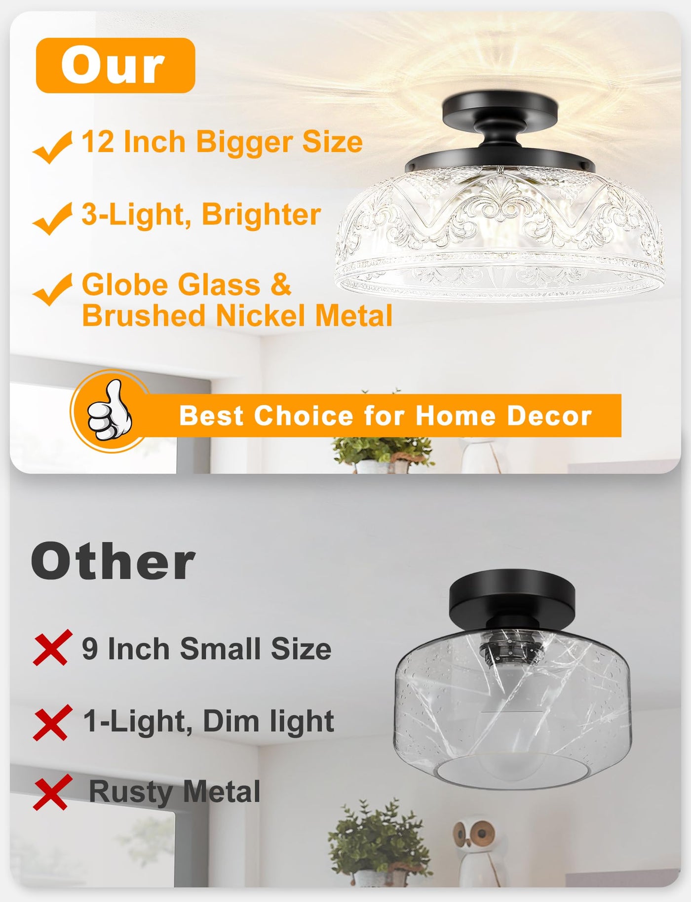 Illuminate Your Space With This Stylish Semi Flush Mount Ceiling Light. Its Upgraded Larger Size And Sleek Black Finish Create A Modern And Sophisticated Look. The 3-Bulb Globe Glass Design Provides Ample Lighting, Perfect For Bedrooms, Kitchens, Porches, Or Hallways. This Indoor Hanging Light Fixture Offers A Versatile And Elegant Solution For Your Lighting Needs. Please Note That Bulbs Are Not Included, Allowing You To Choose Your Preferred Bulb Type And Wattage. With Its Close-To-Ceiling Design, This Light Fixture Is An Excellent Choice For Rooms With Limited Ceiling Height. Enhance The Ambiance Of Your Home With This Semi Flush Mount Ceiling Light.