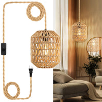 Slyymy Plug In Pendant Light, 15Ft Hemp Rope Cord,Hanging Lights With Plug In Cord On/Off Rattan Hanging Lamp Wicker Woven Baske
