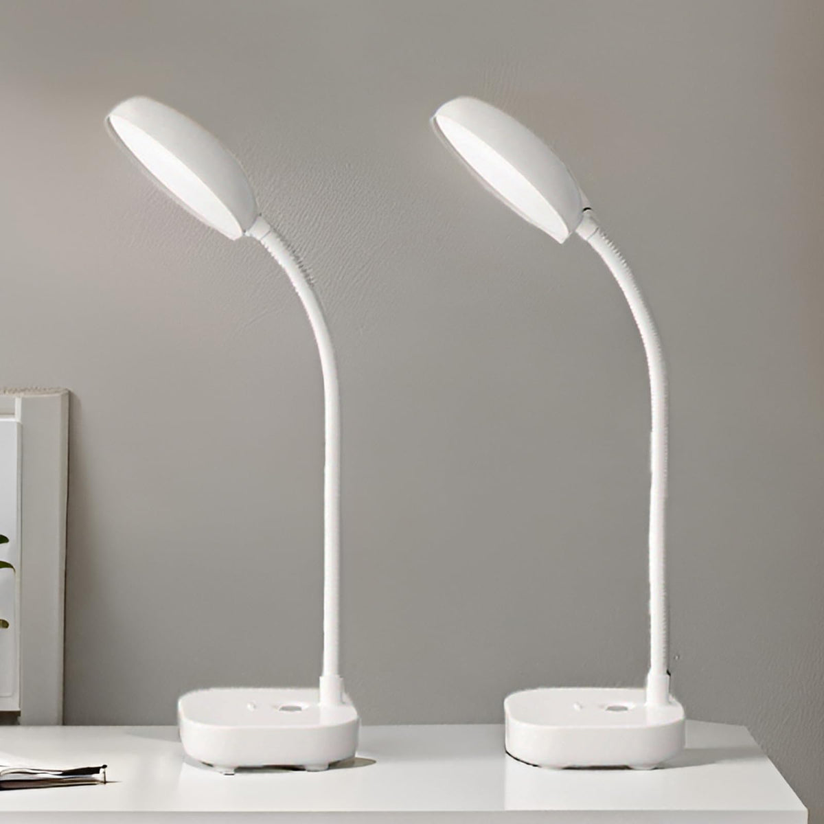 Small Desk Lamps For Small Spaces,2 Pack White,Rechargeable Desk Lamp Battery Powered,3 Light Colors,Eye Protection Light,10 Adj