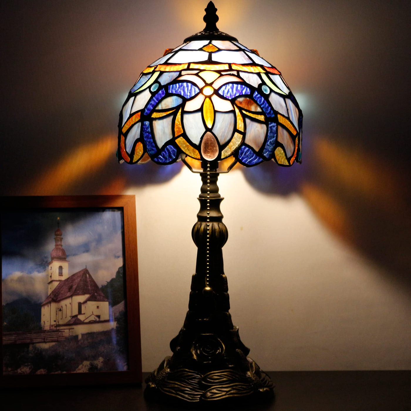 Small Tiffany Lamp Mini Stained Glass Desk Lamp Vintage Table Lamp Tiffany Style Night Light 8X17.5 Inch (Blue Purple Cloudy Sty
