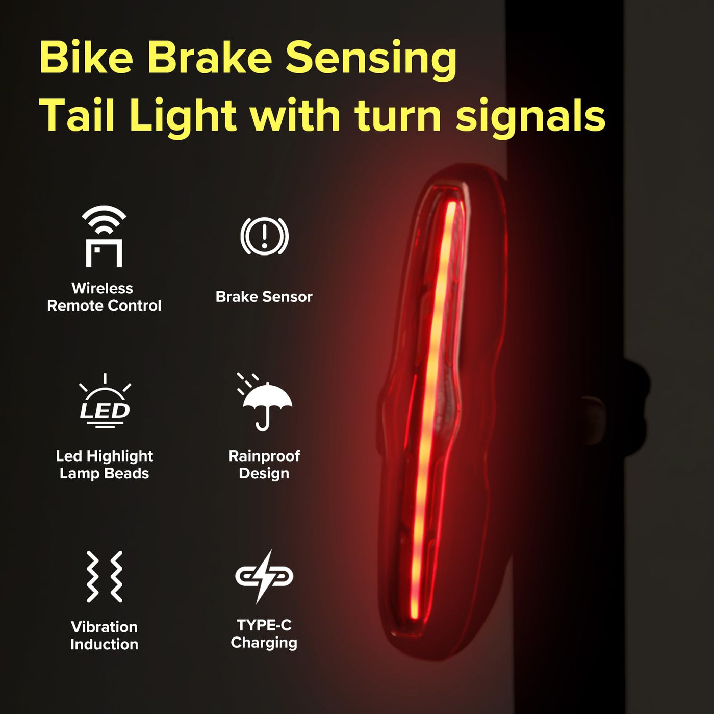 Smart Bike Tail Light with Turn Signals,Automatic Brake Sensing Light,Wireless Remote Control Bicycle Rear Lights,USB Rechargeab
