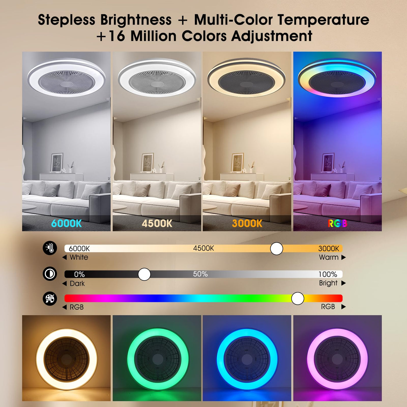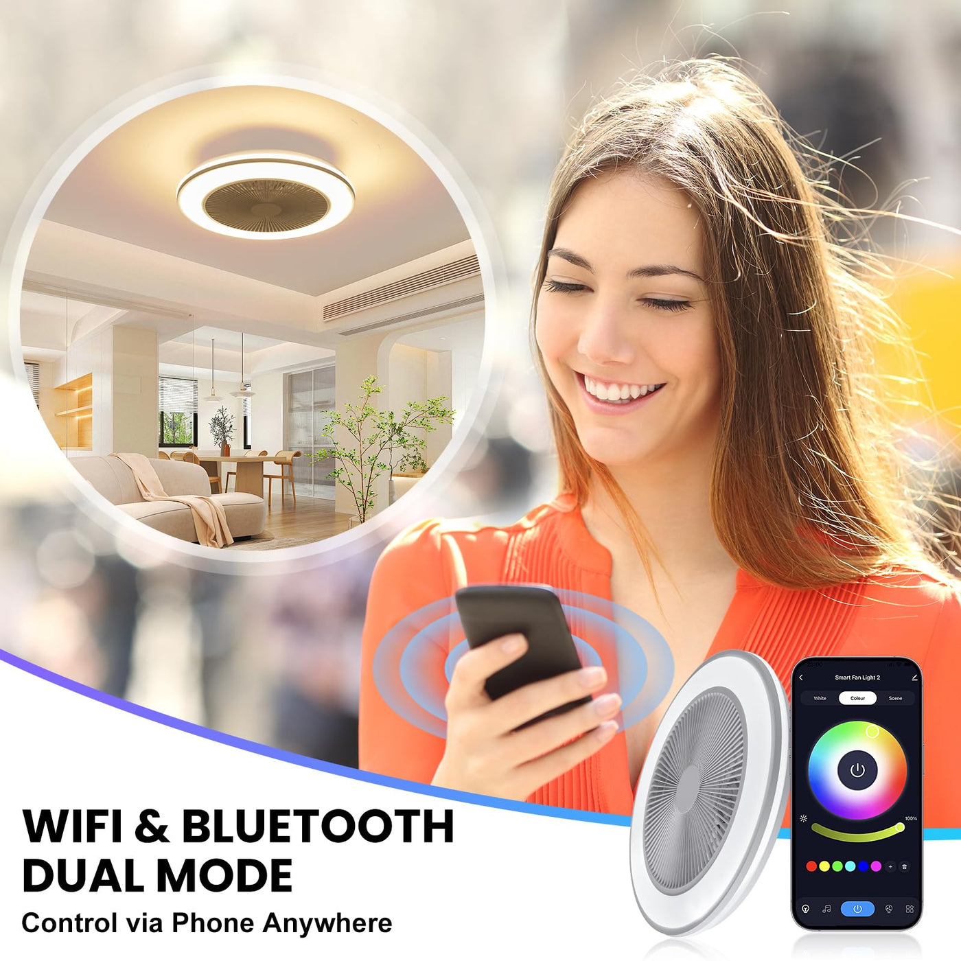Smart WiFi&Bluetooth Ceiling Fans with Lights and Remote,20''low profile ceiling fan with light,Compatible with Alexa,Google Assistant,App Control Color Changing LED,3000K-6000K,6 adjustable speed
