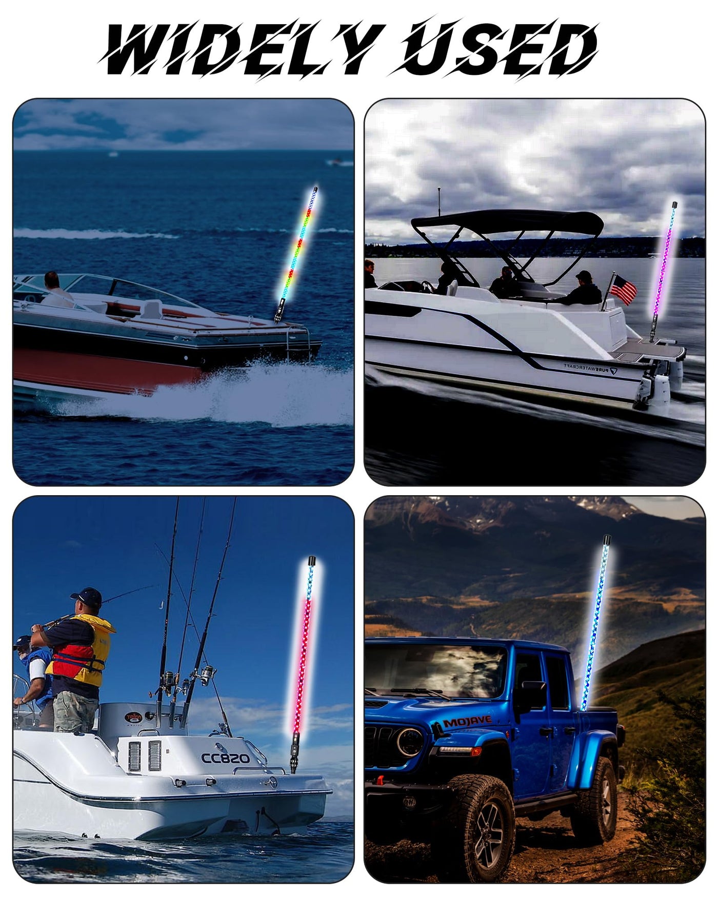 Why boat navigation light is important? The primary function of marine navigation lights is to aid prevention of any major accident from happening. All boats - whether big or small are required to have night lights as a part of the navigation systems. Easy Install Works with All Boats: No polarity requirements. Install as easy as 1,2,3 with our detailed instruction card. Simply plug-in boat whip light. Level up your boat navlight pole to epic 4ft NavLIGHT SHOW.