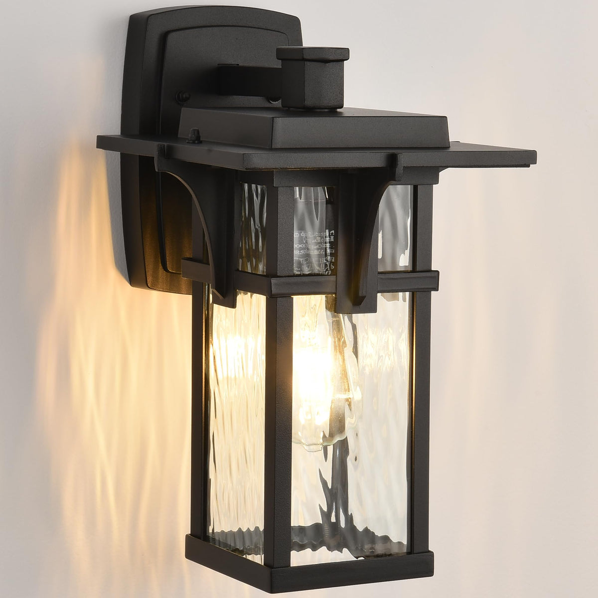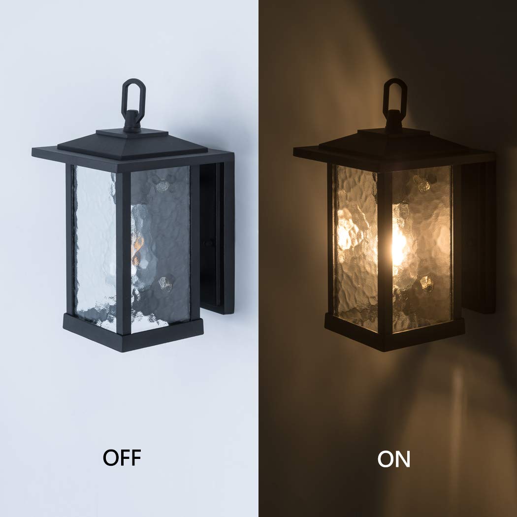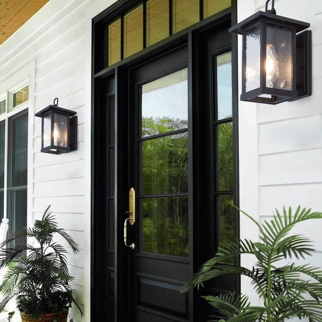 Smeike Black Outdoor Wall Lantern, Aluminum Sconce Light With Water Glass For Porch & Garage