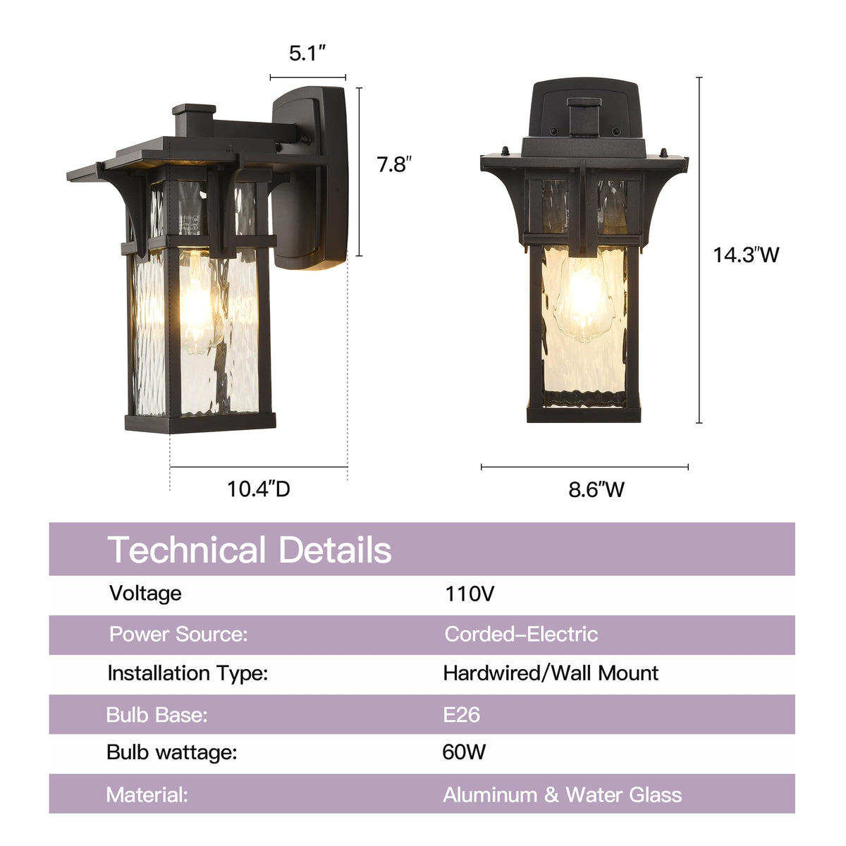 ???DIMENSIONS?Black plate measures 4.7"L x 7.9"W; lamp body size is 7"L x 7.9"W x 13.2"H, making it perfect for anywhere you desire an attractive outdoor lighting decoration.