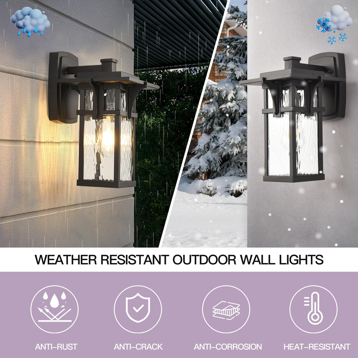 Q: Is the Smeike Outdoor Wall Lantern weather resistant?A: Yes, this outdoor wall lantern is designed with weather-resistant aluminum metal construction and a clear glass shade, making it suitable for wet locations and ensuring durability in various outdoor conditions.