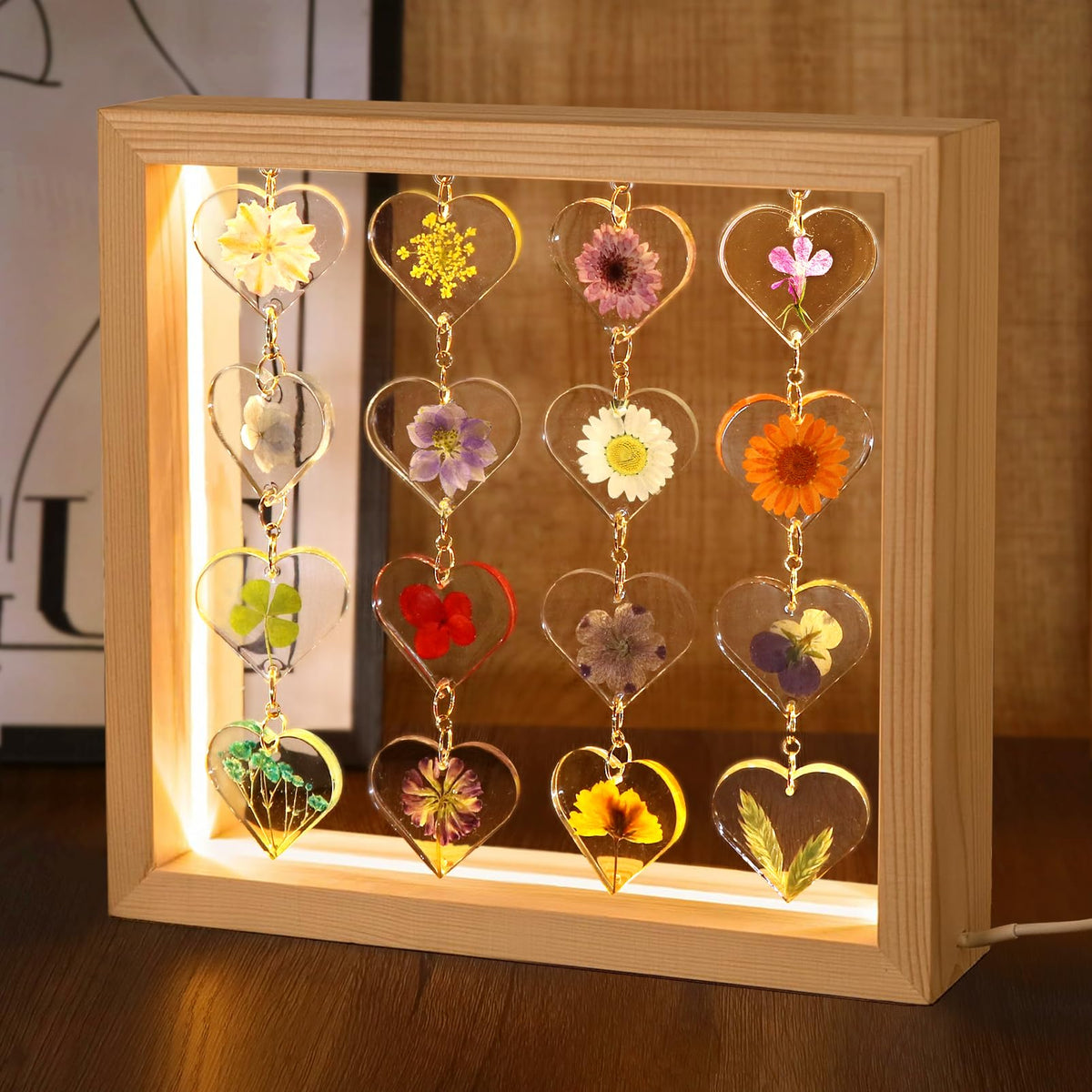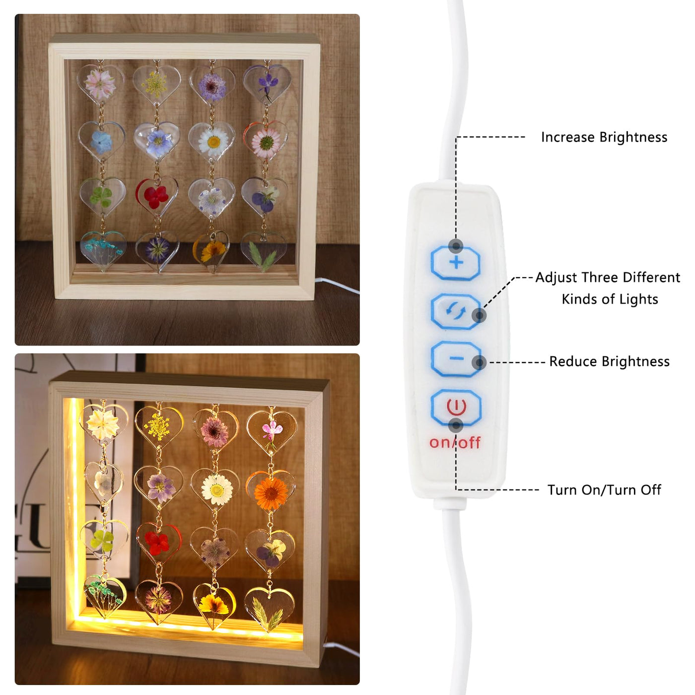 Smuk Resin Dried Flower Led Aesthetic Desk Lamp, Unique 3 Way Dimmable Natural Pressed Flower Table Lamp With Wooden Frame For Desk, Table, Nightstand, Bedroom, Living Room, Office