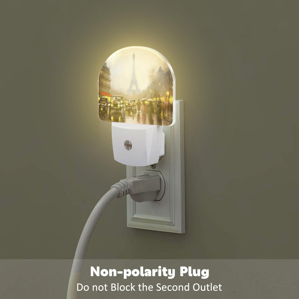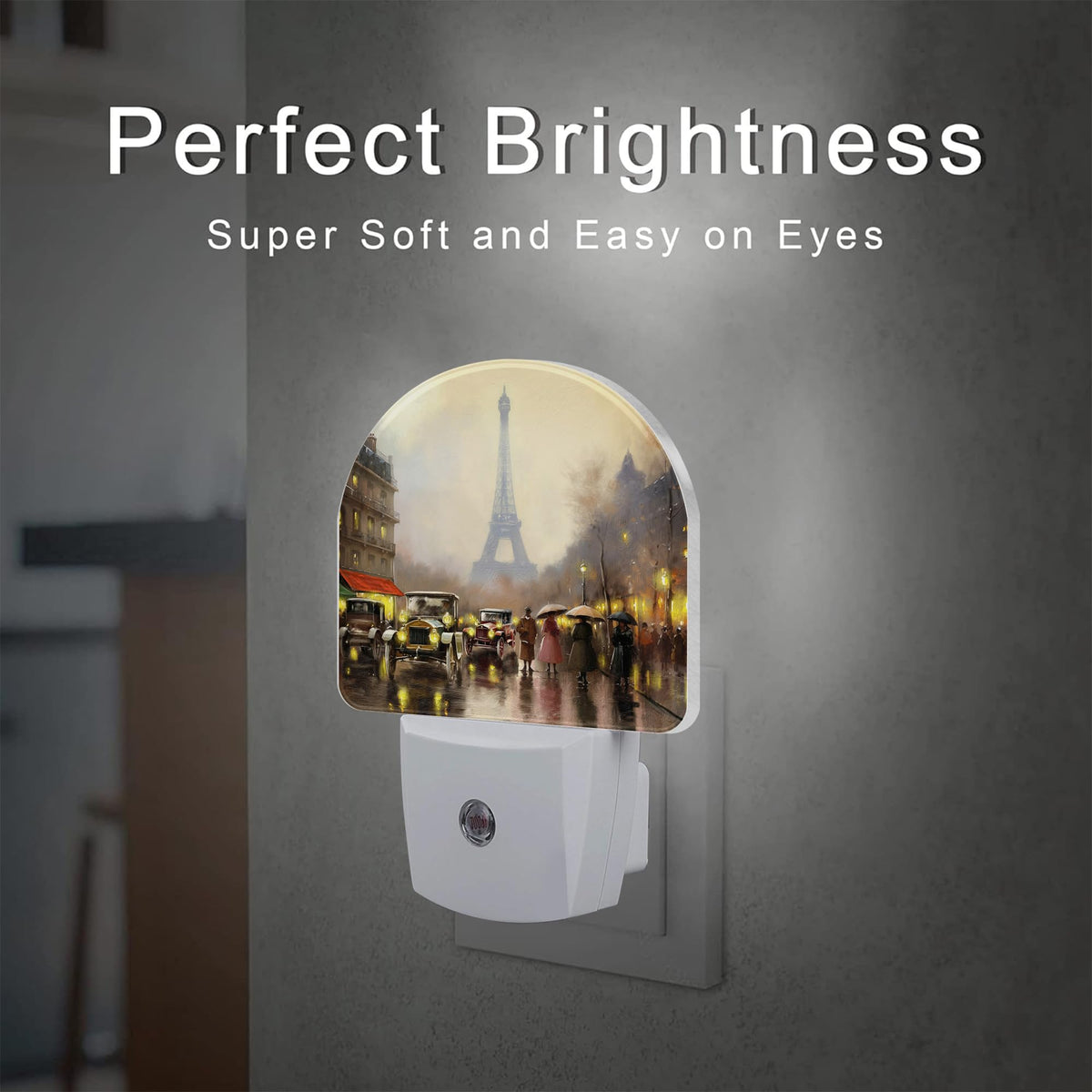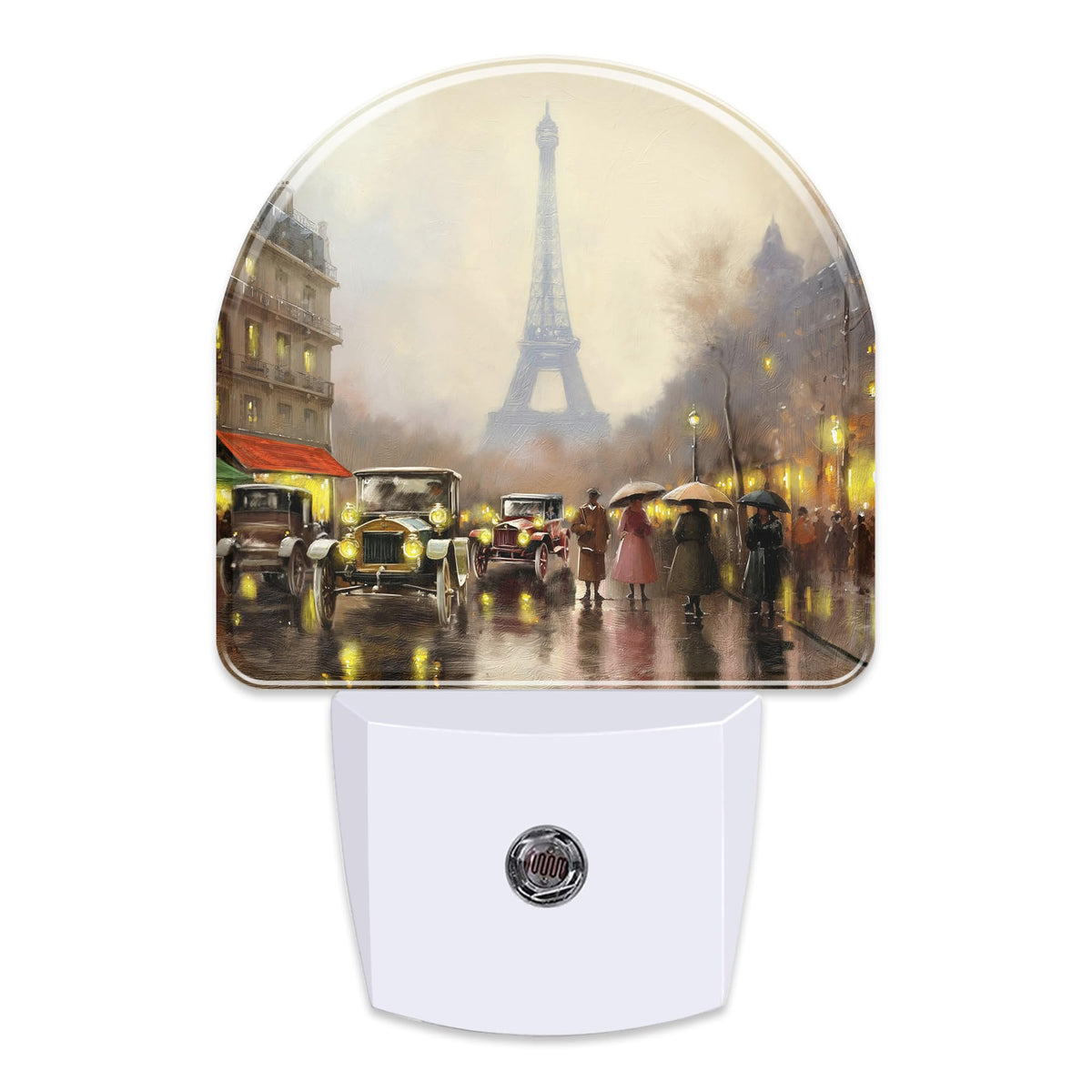 sndheke Paris Eiffel Tower Oil Painting Night Light for Kids,City Street Night View Night Light Plug in with Dusk to Dawn Sensor