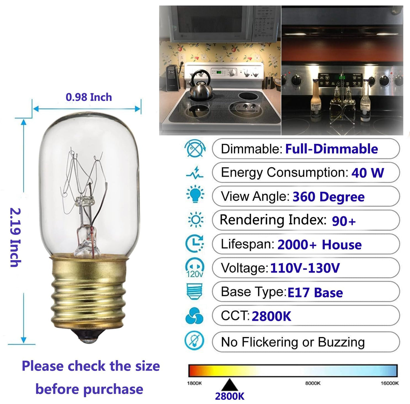 Snnalosses 40 Watt Appliance Light Bulb,High Temp Resistance Microwave Oven Bulb, E17 Indicator Intermediate Base T8 Tubular Lig