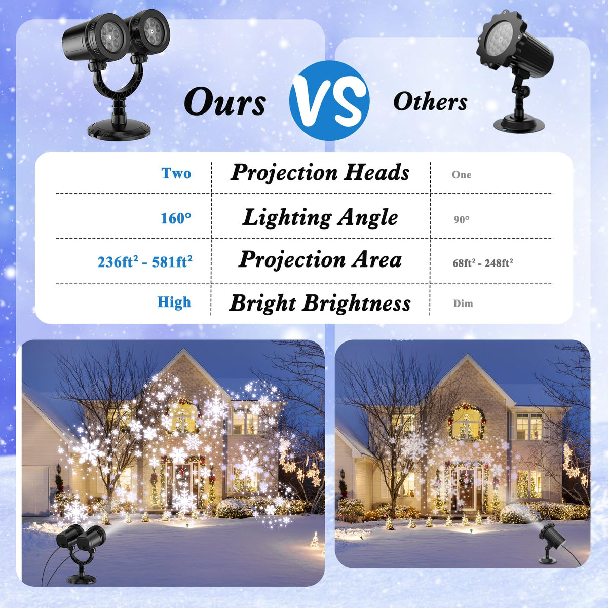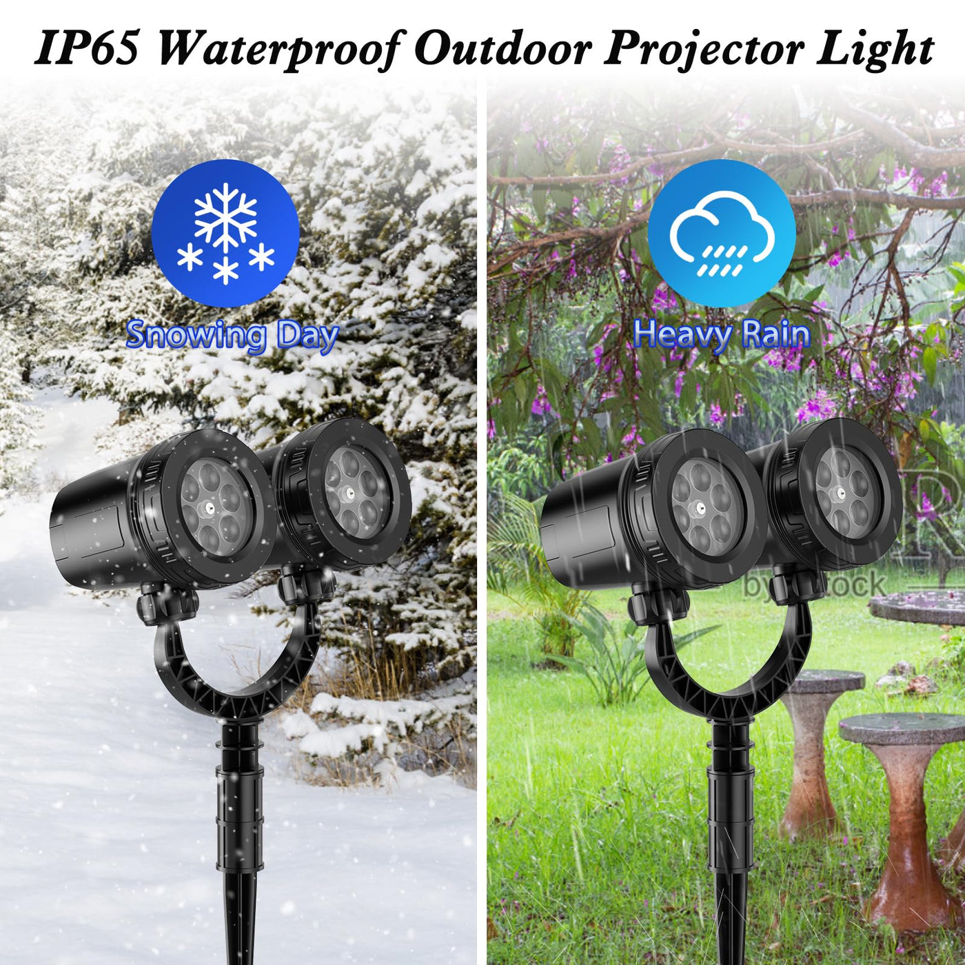 Snowflake LED Christmas Light Projector -Double Head VIP65 Waterproof Holiday Decorations for Indoor Outdoor Party Decoration