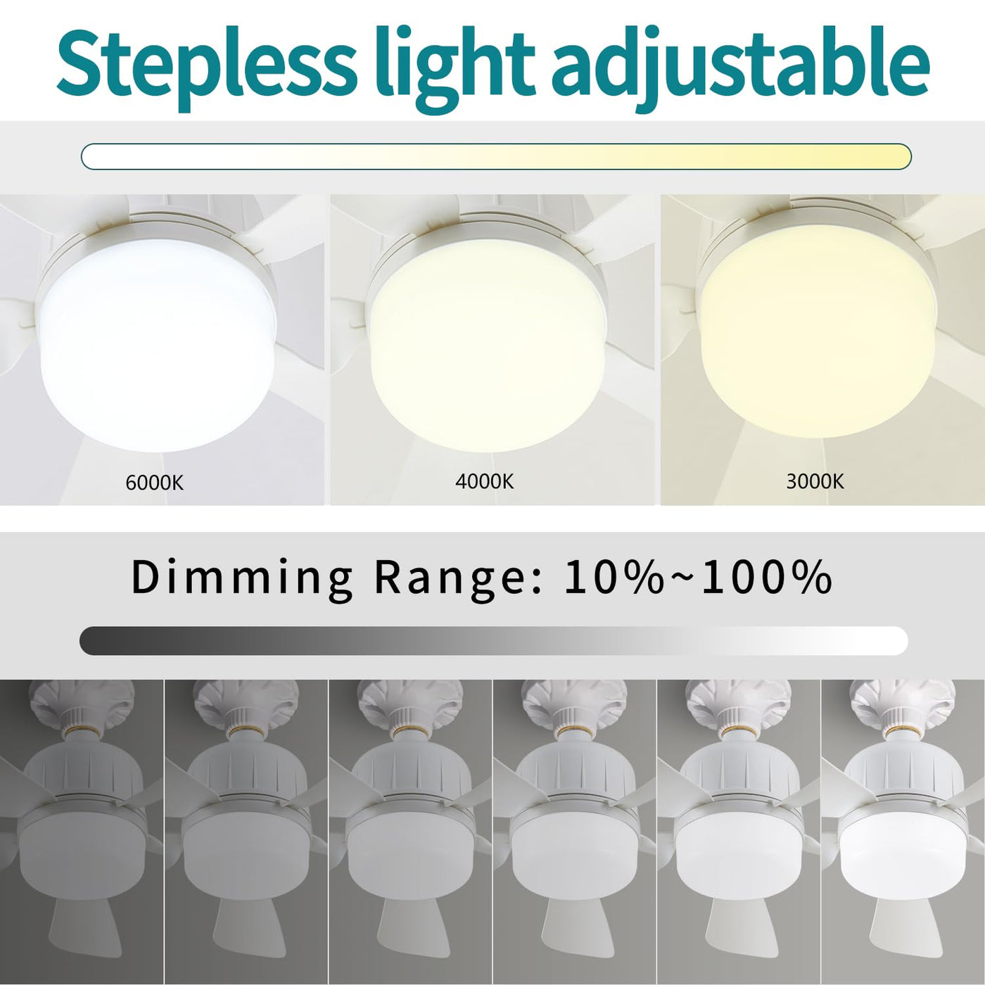 Crafted from high-impact ABS plastic, the fan light is designed for durability and efficiency. The low-profile DC motor operates quietly, ensuring a peaceful environment while delivering powerful airflow. With its replaceable LED light featuring adjustable color temperatures (3000K, 4000K, 6500K) and brightness levels (20%-100%), you can effortlessly create the perfect ambiance for any occasion. The included remote control allows for easy adjustments from anywhere in the room, enhancing convenience and usability.
