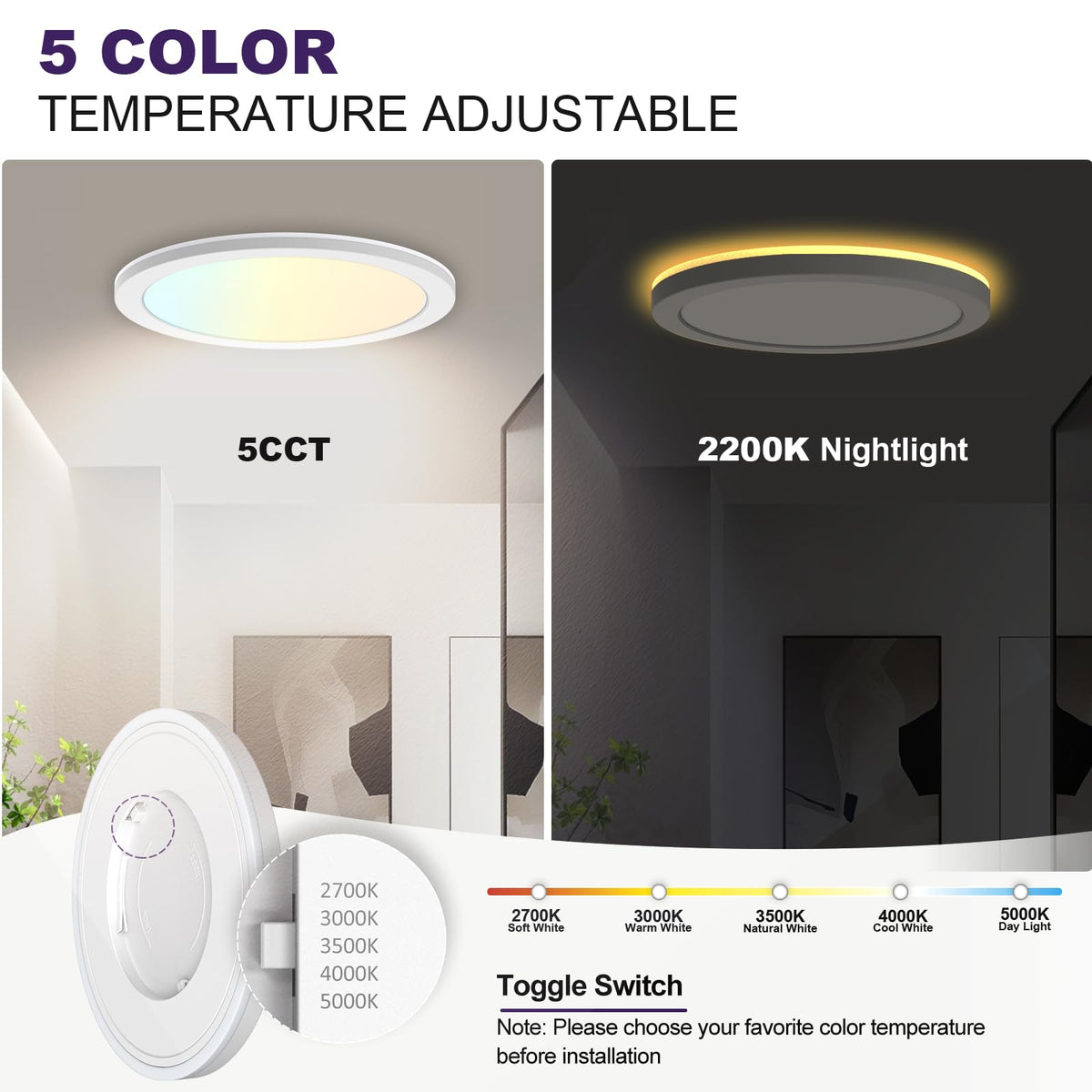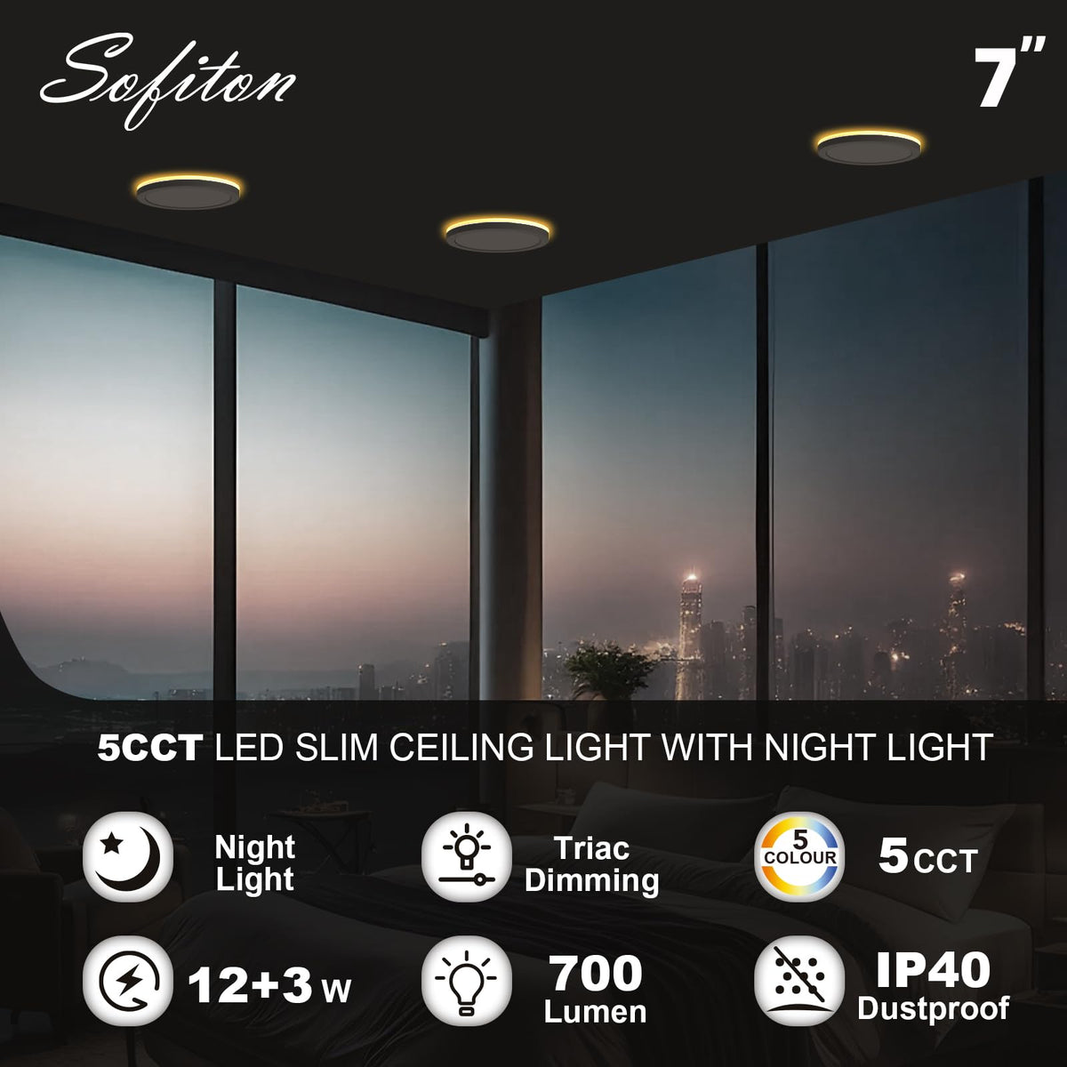 Sofiton 7 Inch Led Flush Mount Ceiling Lights With Nightlight, 2700K/3000K/3500K/4000K/5000K 5Cct Selectable Ceiling Light Fixtu