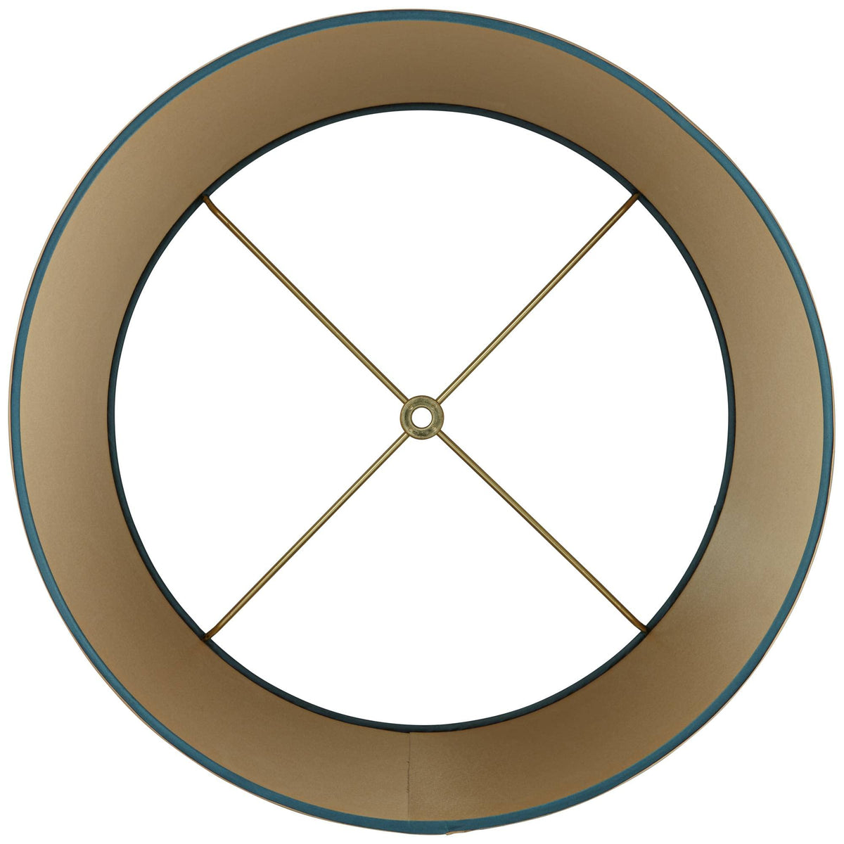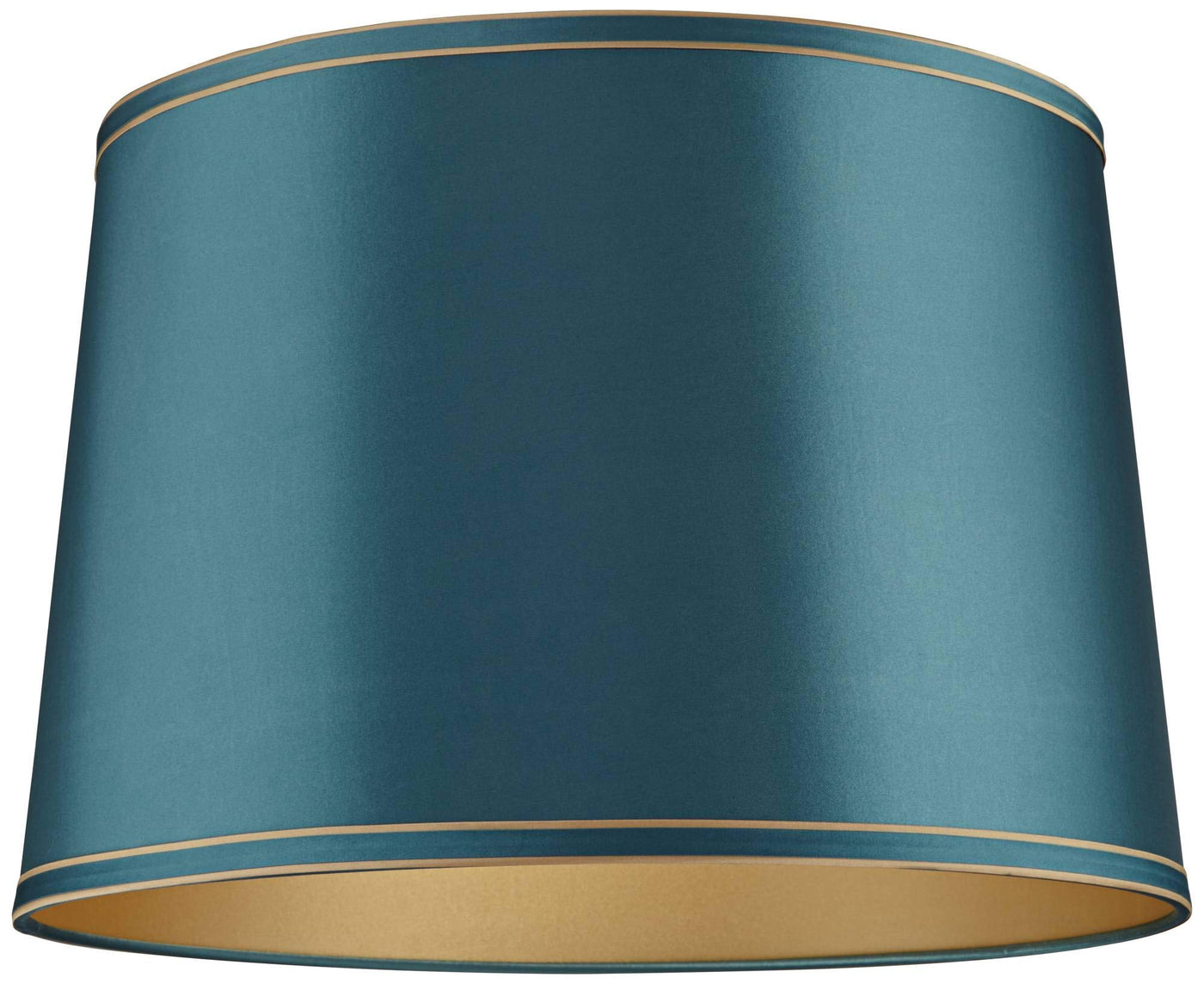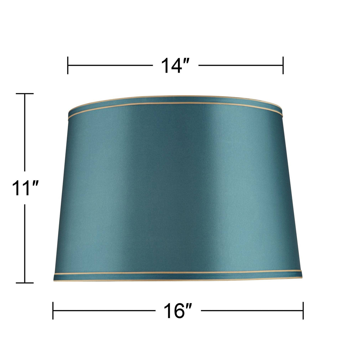 Soft Teal Medium Drum Lamp Shade With Gold Trim 14'' Top X 16'' Bottom X 11'' High (Spider) Replacement With Harp And Finial - S