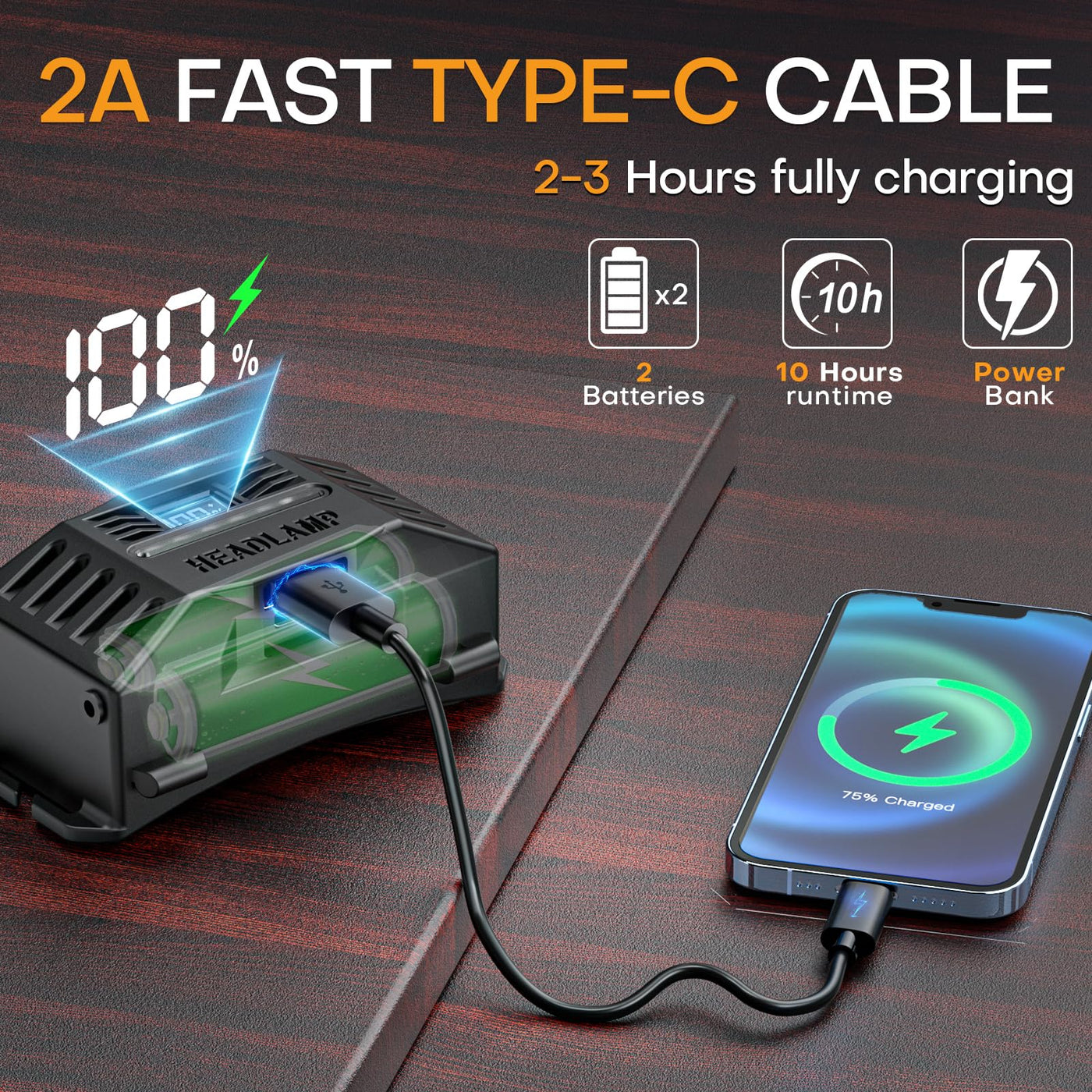 Sogdeco Led Rechargeable Headlamp, Head Lamp Super Bright With 9 Modes & Ipx6 Waterproof Zoomable Head Lights For Forehead, 90 A