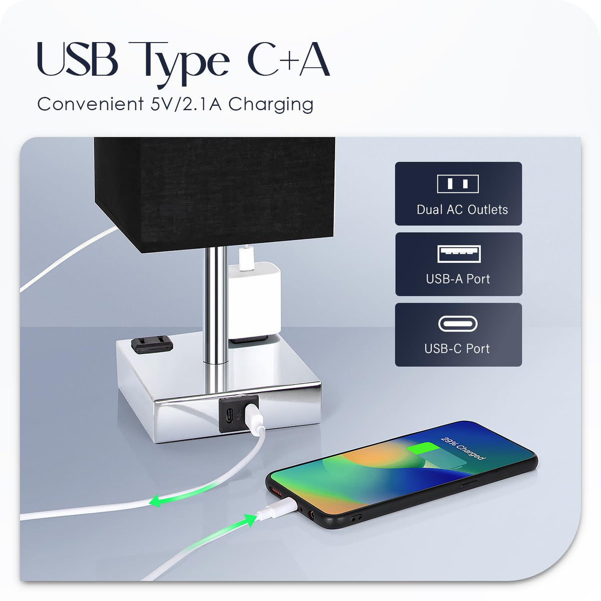 Enhance your bedroom or living room with this contemporary pair of bedside table lamps from Soilsiu, designed to combine style and functionality seamlessly. Featuring USB C+A charging ports and AC outlets, these lamps provide added convenience for modern lifestyles. The 3-way dimmable function allows you to effortlessly adjust the brightness to match your mood or activity, making these lamps perfect for any setting. Adorned with elegant fabric shades, they not only illuminate your space but also add a touch of sophistication. Each lamp is equipped with a 6W bulb that delivers an impressive 300 lumens of light, ensuring a bright and inviting atmosphere. With an estimated energy cost of only $1.21 per year based on 5 hours of daily use, these lamps are a practical choice that aligns with energy efficiency and style.