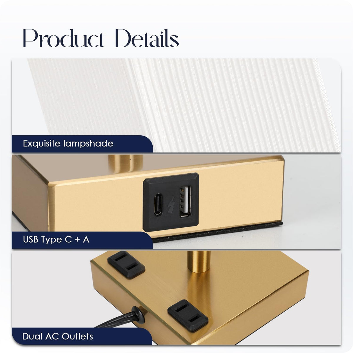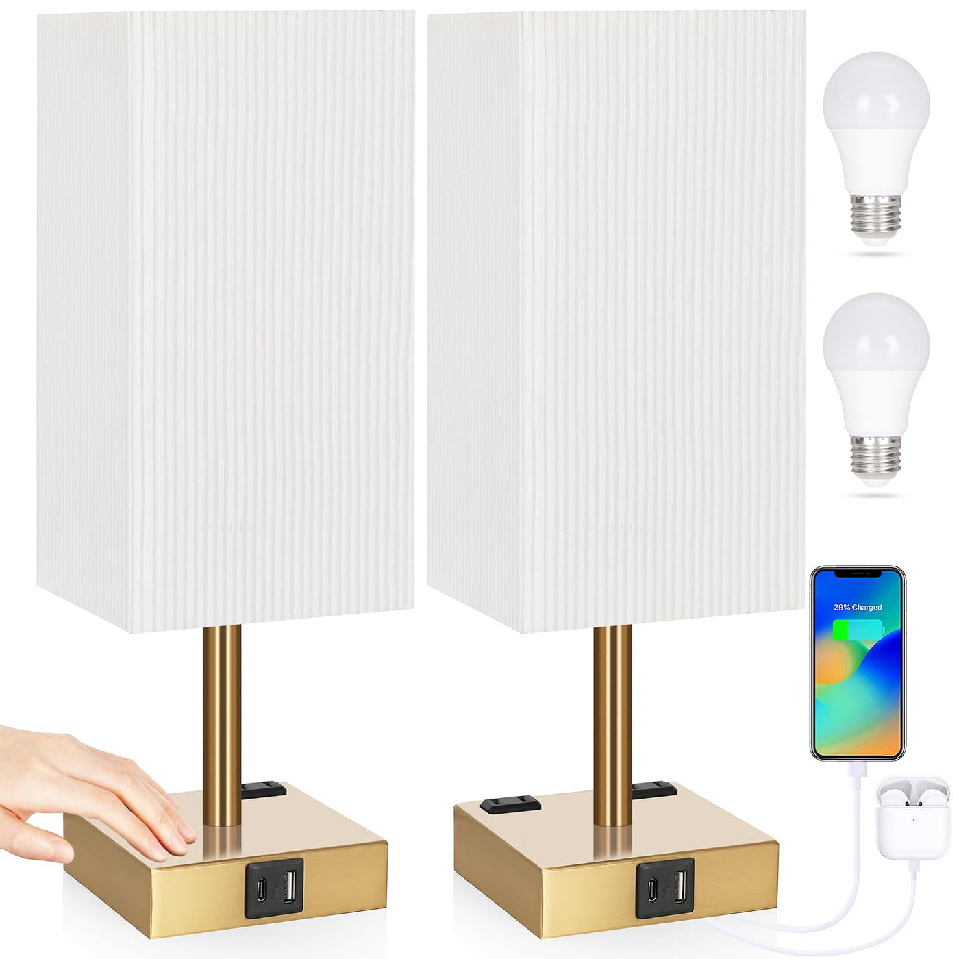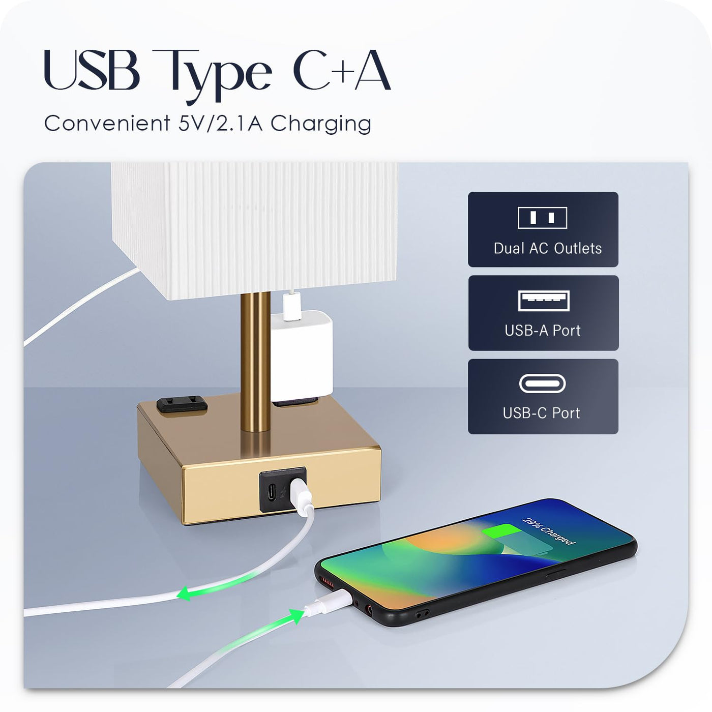 Enhance Your Bedroom Or Living Room With This Contemporary Pair Of Bedside Table Lamps Featuring Usb C+A Charging Ports And Ac Outlets For Added Convenience. The 3-Way Dimmable Function Allows You To Adjust Brightness To Suit Your Mood. Adorned With Elegant Fabric Shades, These Lamps Add A Touch Of Sophistication To Any Space. Each Lamp Comes Equipped With A 6W Bulb Providing 300 Lumens Of Light. With An Estimated Energy Cost Of $1.21 Per Year Based On 5 Hours Of Daily Use, These Lamps Offer Both Efficiency And Style, Making Them A Practical Choice To Elevate Your Home Or Office Decor.