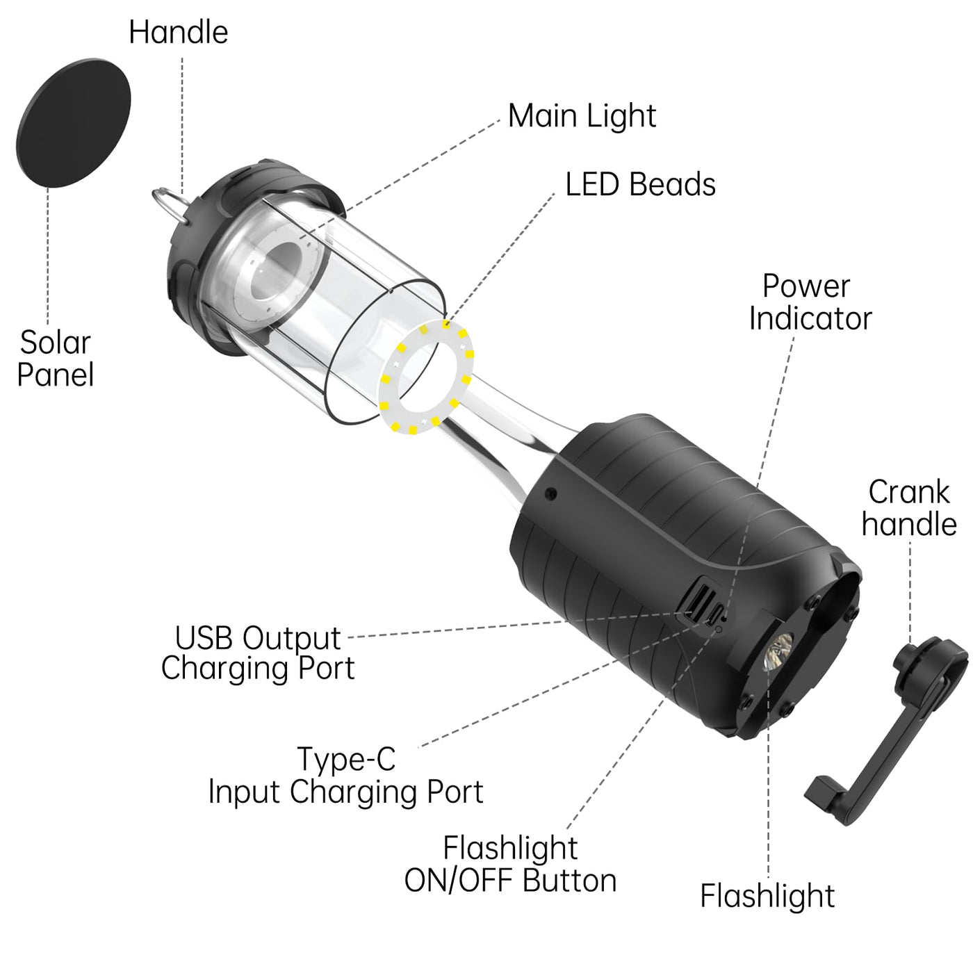 Solar Camping Lantern,Rechargeable LED Lights, 5000mAh Waterproof Solar Powered/ Hand Crank Powered Rechargeable Lantern, Emerge