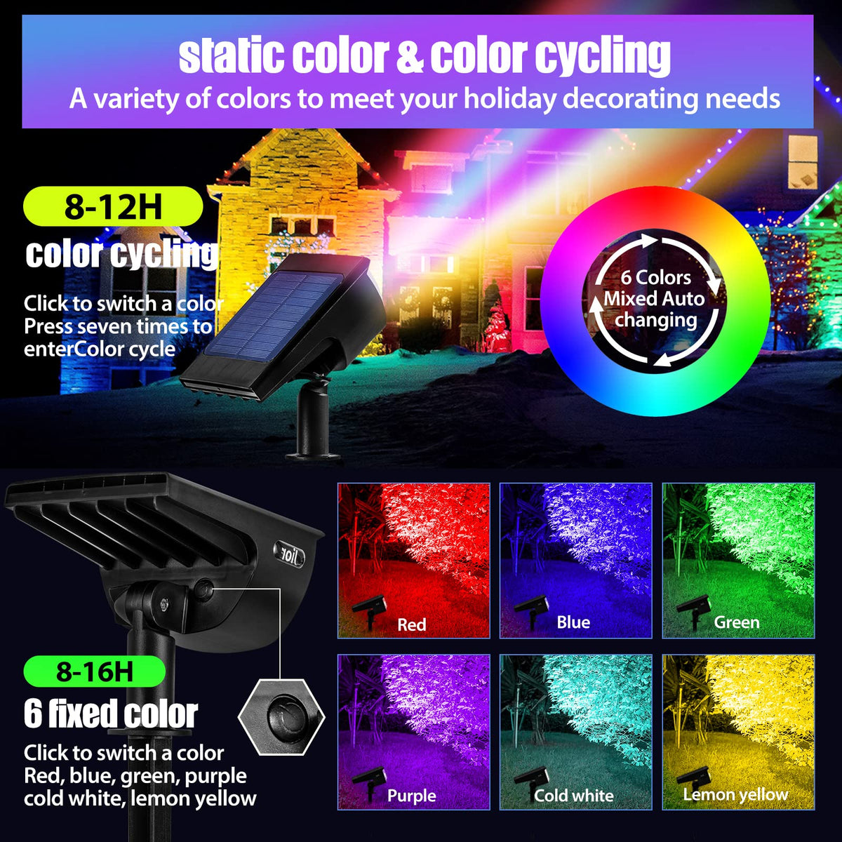 Jior 32 LED Solar Outdoor Lights - 7 Color Modes, IP67 Waterproof, 2-in-1 Solar Spotlights for Garden, Pool, Yard, Walkway Decor, Multicolor-4